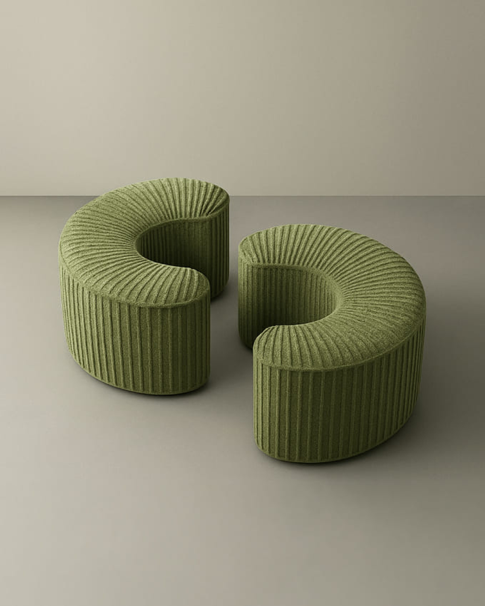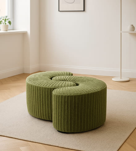Скульптурный дизайнерский пуф в изумрудном бархате, создающий акцентный штрих в любом интерьере