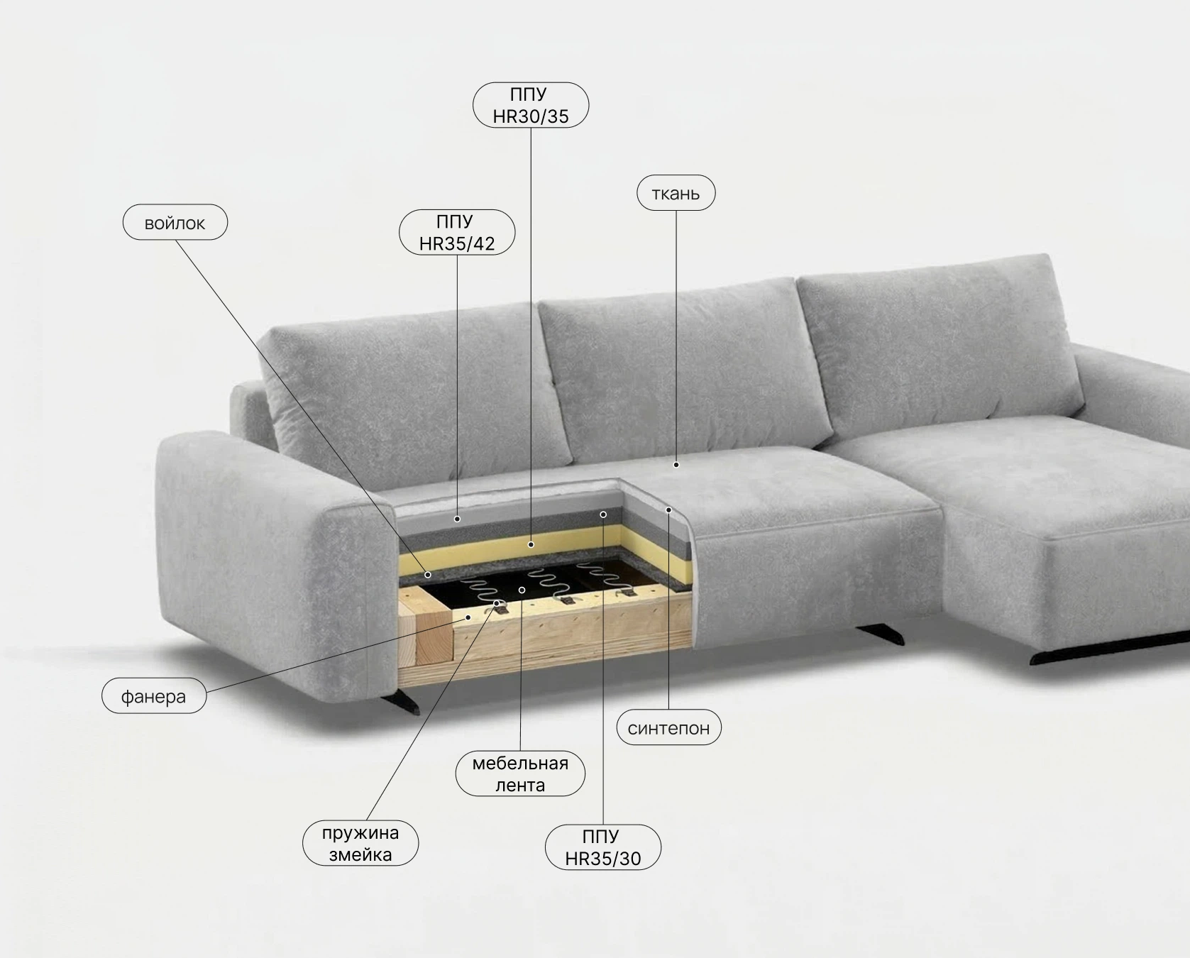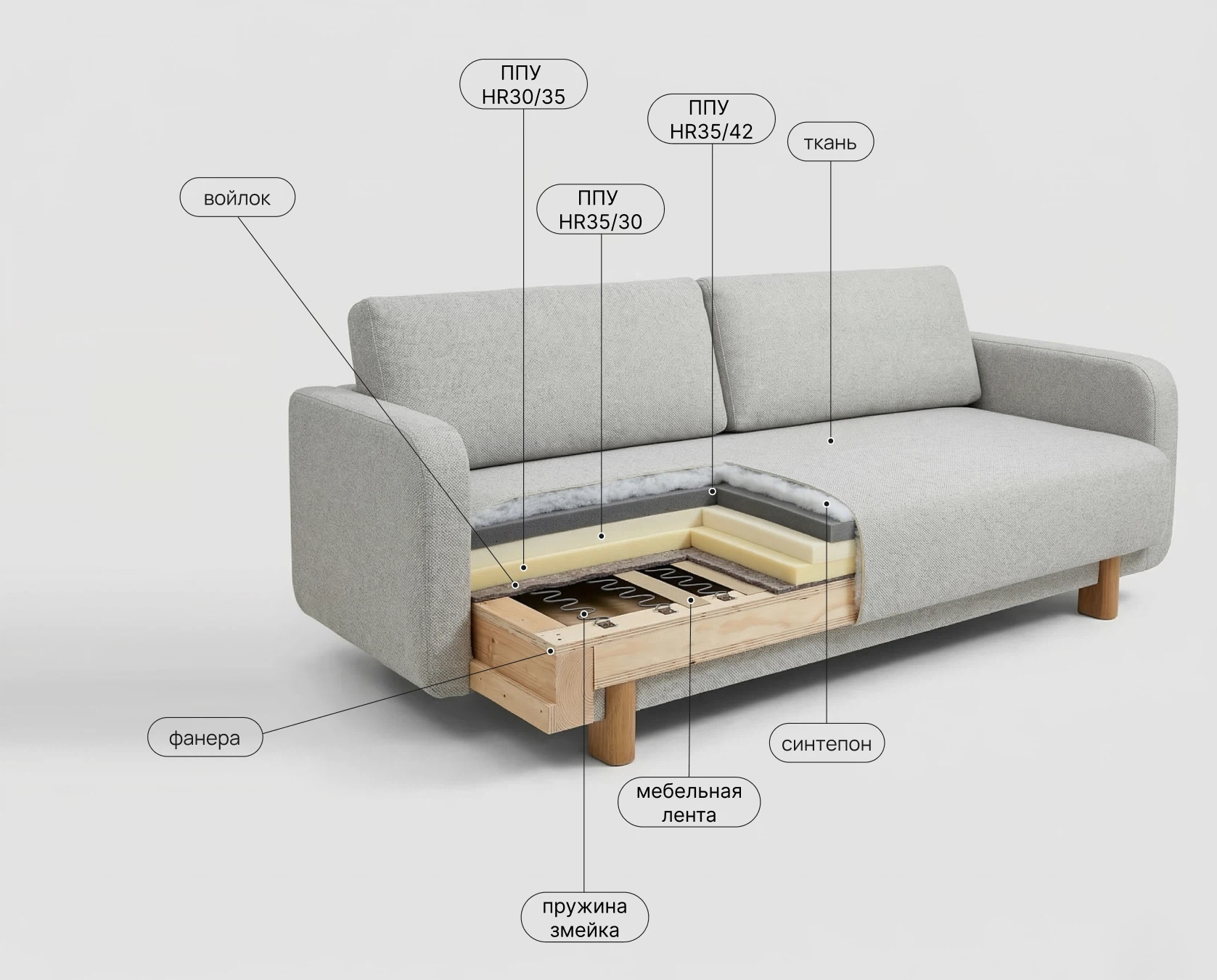 Каждая модель проектируется с учётом анатомии человека. Оптимальная глубина сиденья дивана, высота и упругость – для максимального комфорта в любом положении часами
