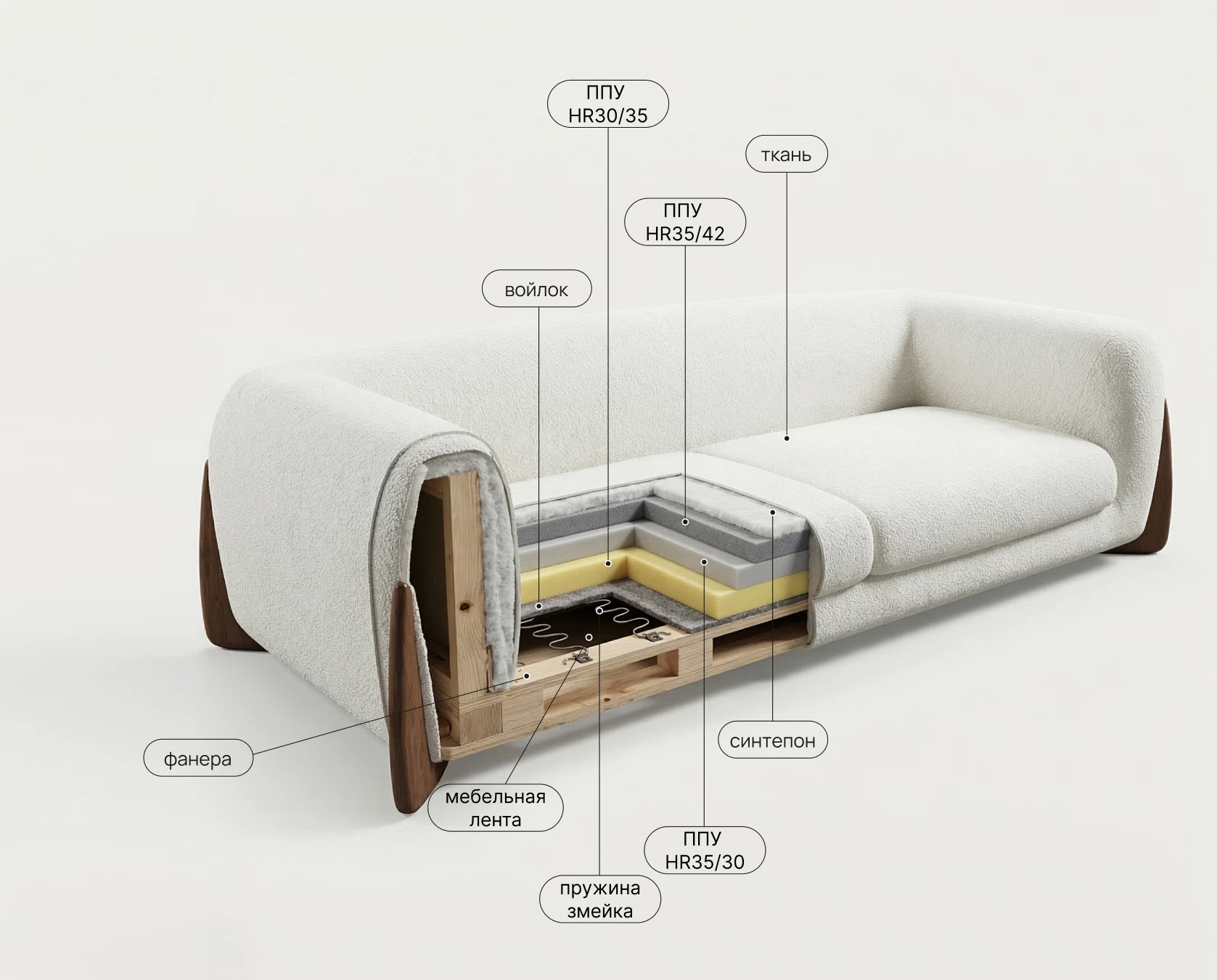 Все наши ткани проходят тест Мартиндейла (50 000+ циклов) — гарантия долговечности. Вы можете выбрать любые ткани из огромного ассортимента, исходя из ваших потребностей и предпочтений