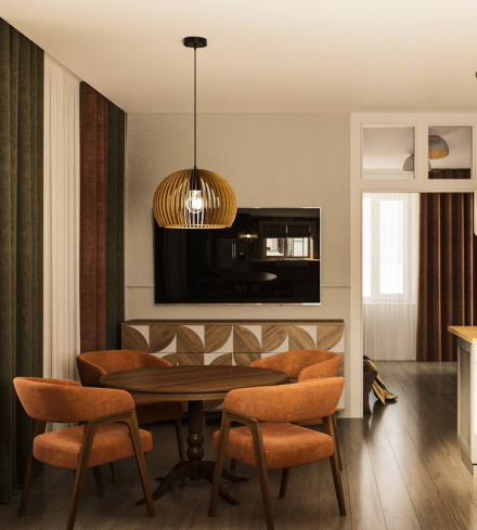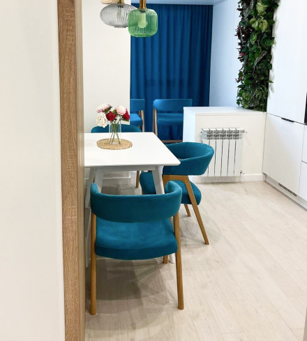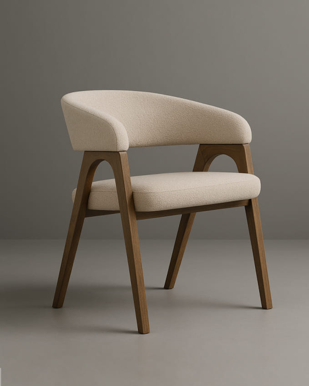 Стул с мягкой обивкой и фигурным деревянным каркасом в современном стиле