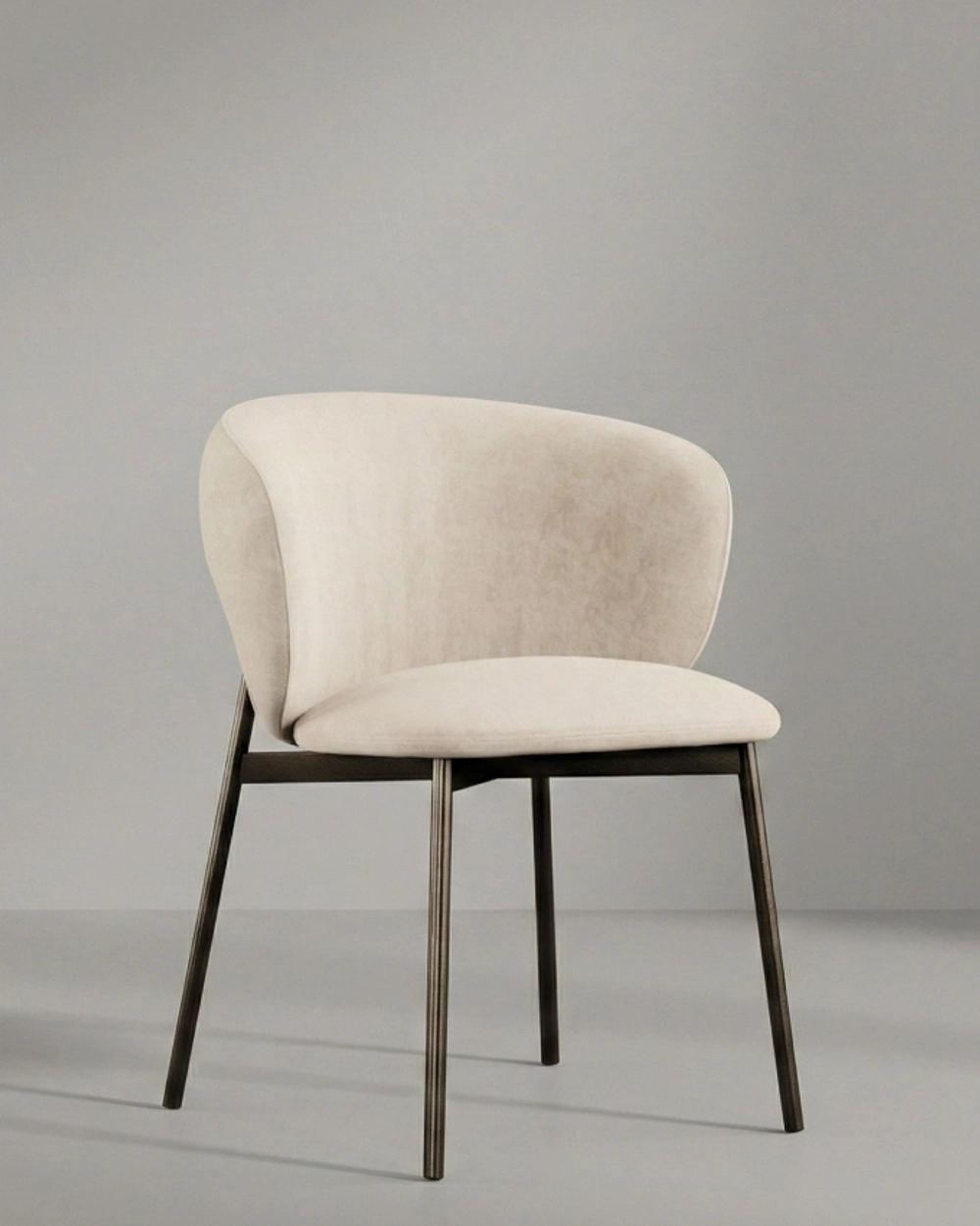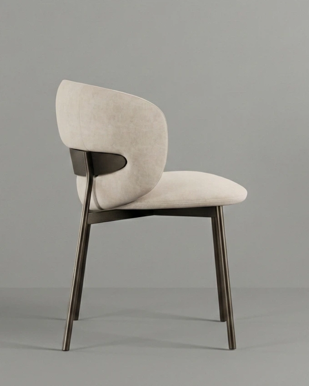 Стул с плавной формой спинки и лаконичной опорой на четырёх металлических ножках