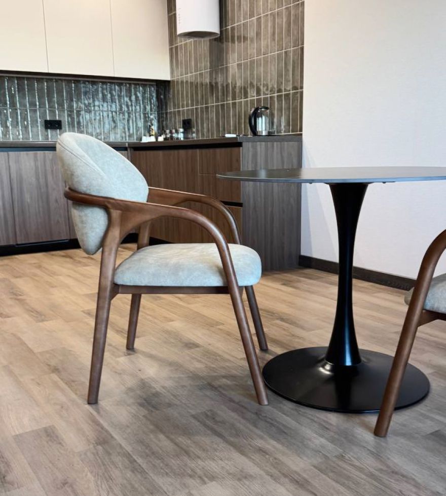 Стул с плавными линиями и мягкой обивкой для уютных интерьеров.
