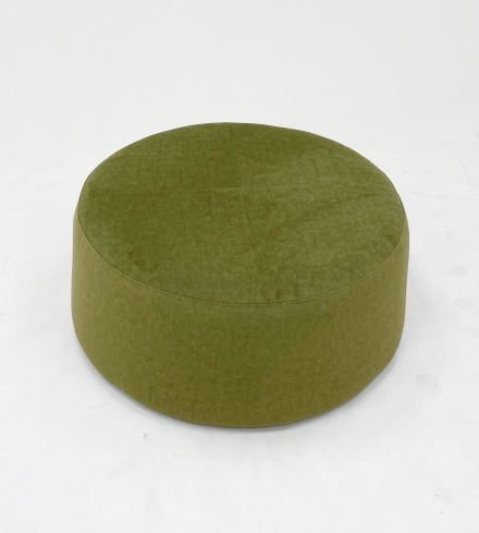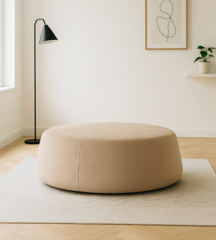 Низкий пуф с плавными формами и бархатистой обивкой, создающий акцент роскоши и уюта в интерьере