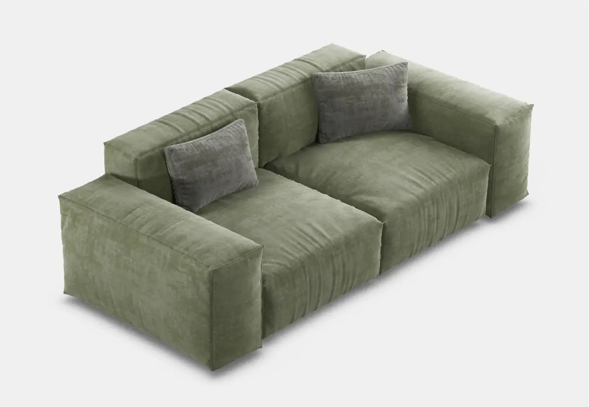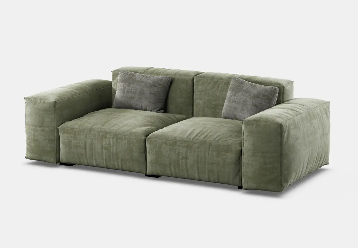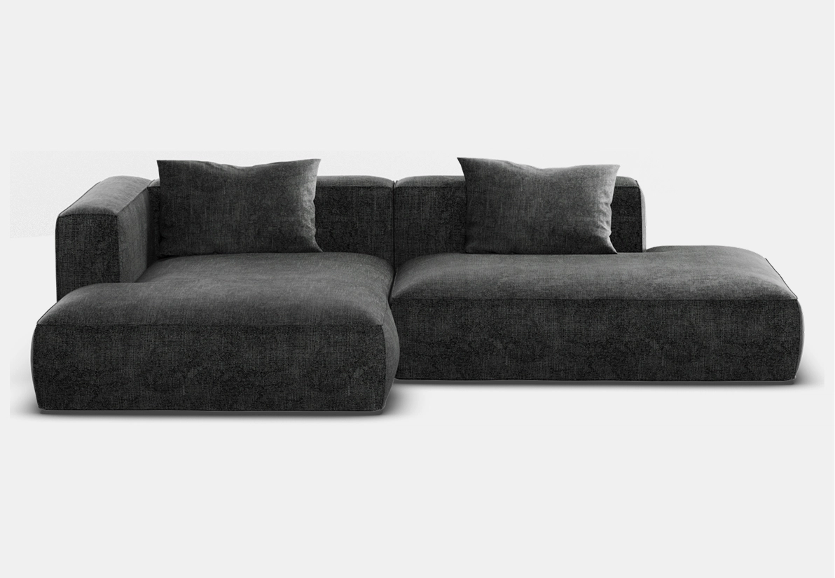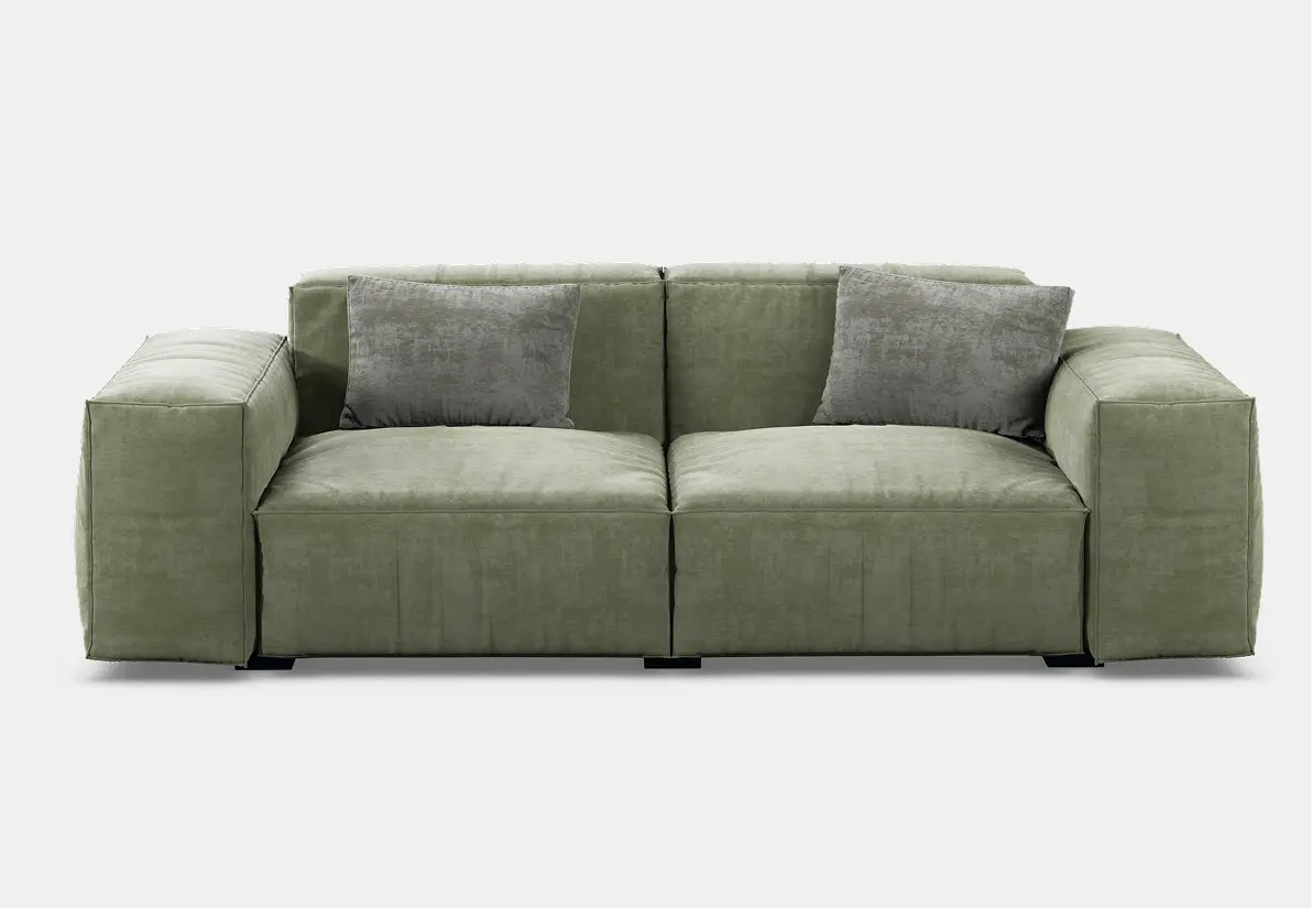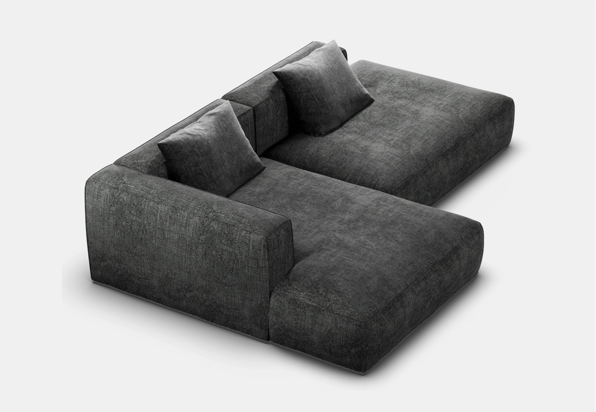 Объемный, геометрически выраженный диван, сочетающий монументальную форму с глубоким, расслабляющим комфортом