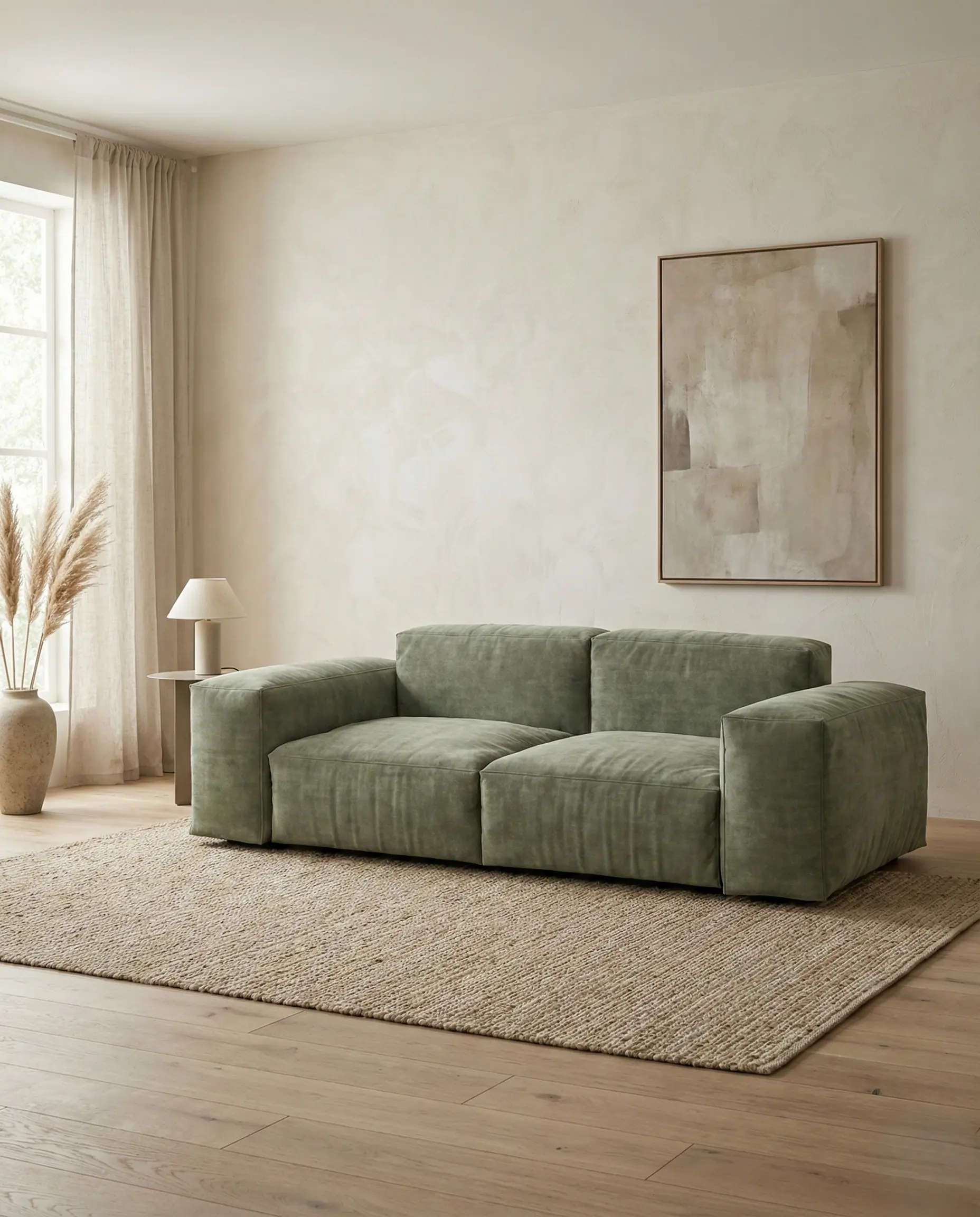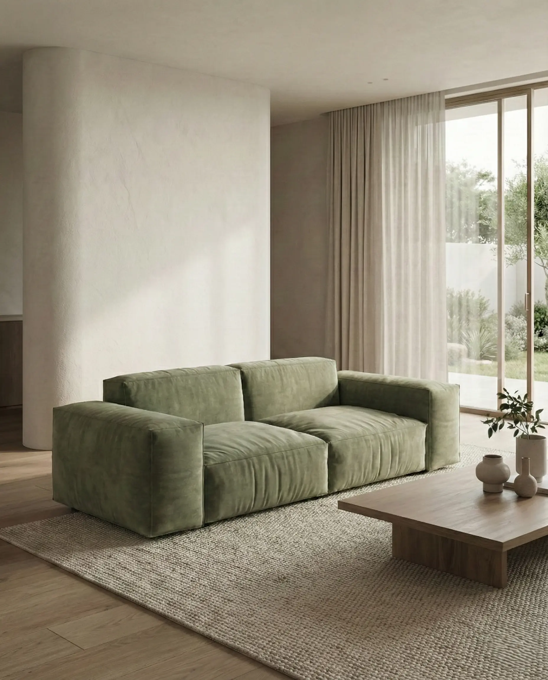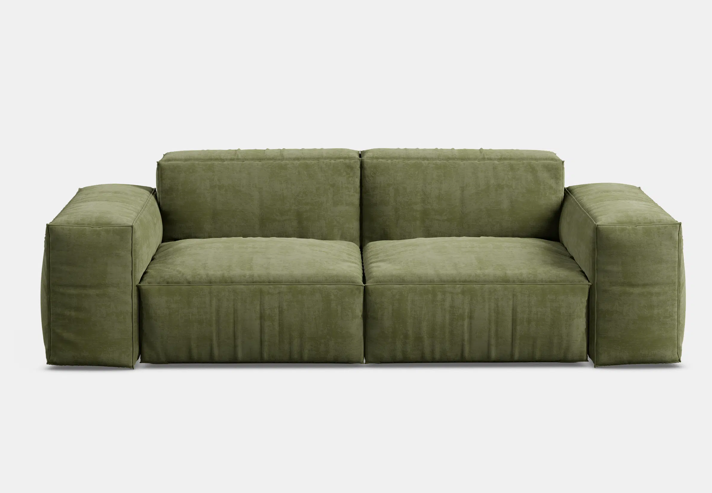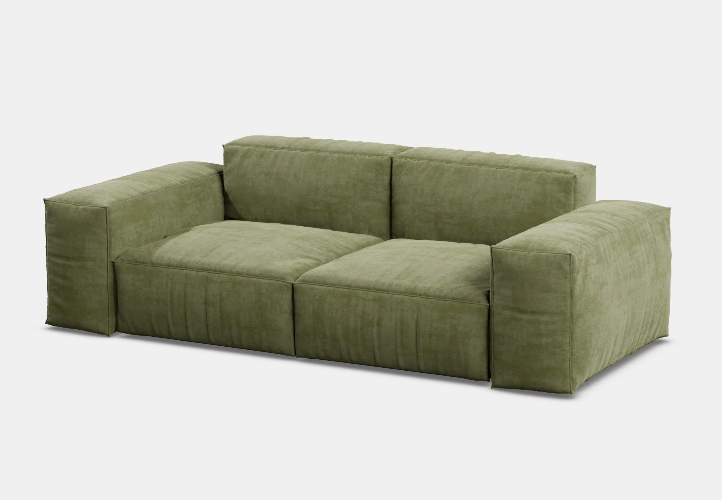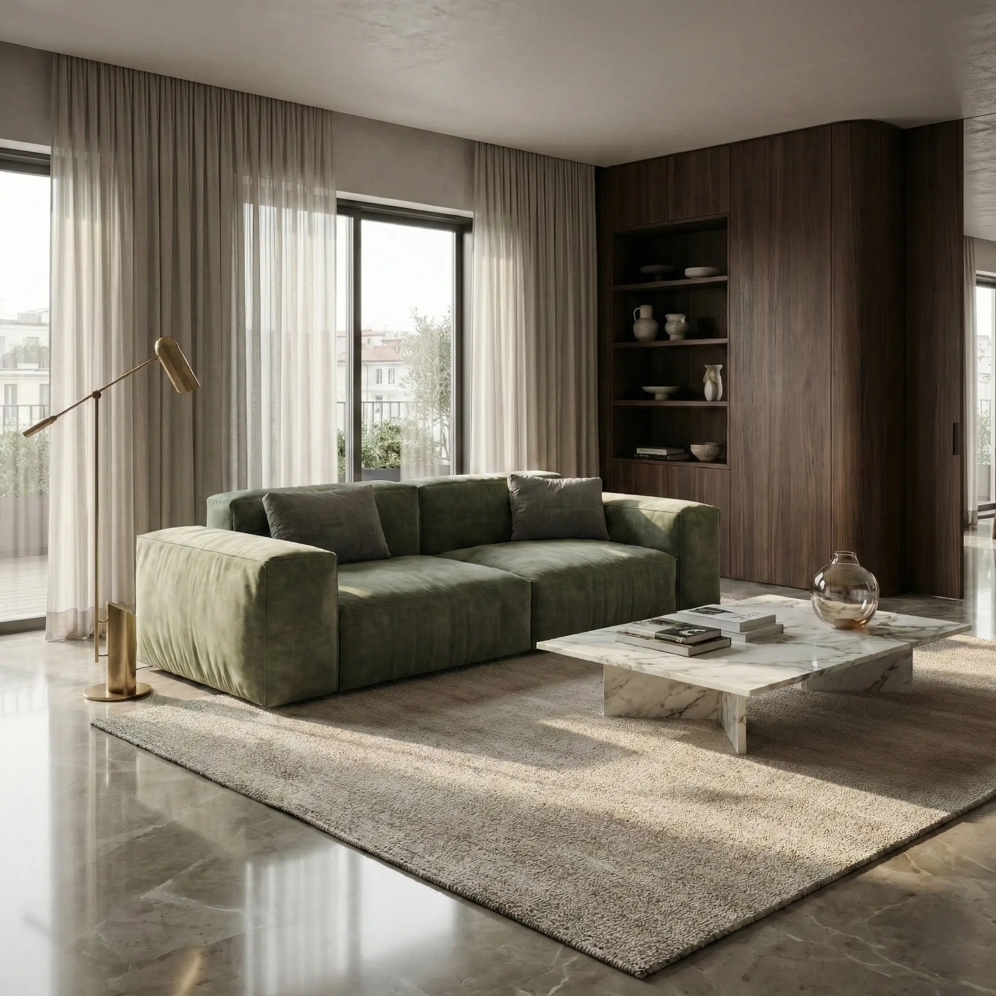 Объемный, геометрически выраженный диван, сочетающий монументальную форму с глубоким, расслабляющим комфортом