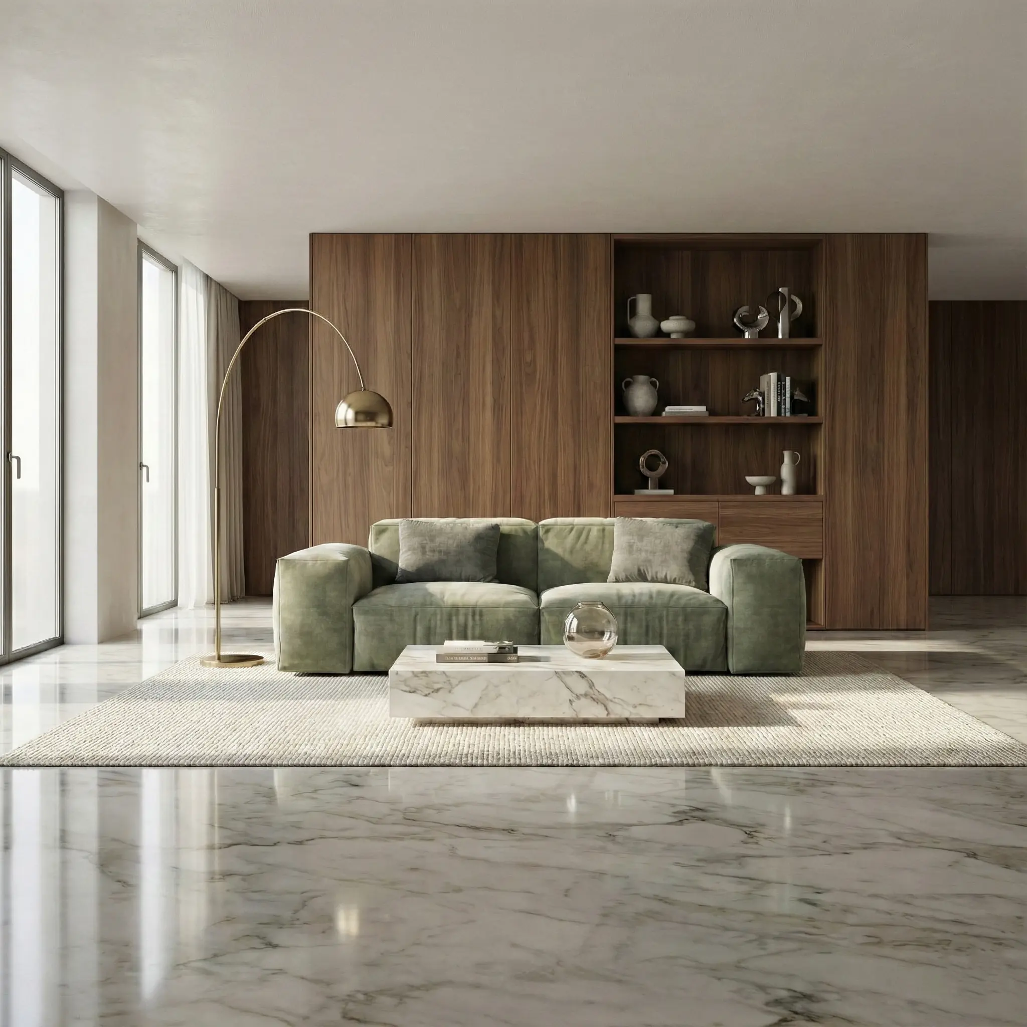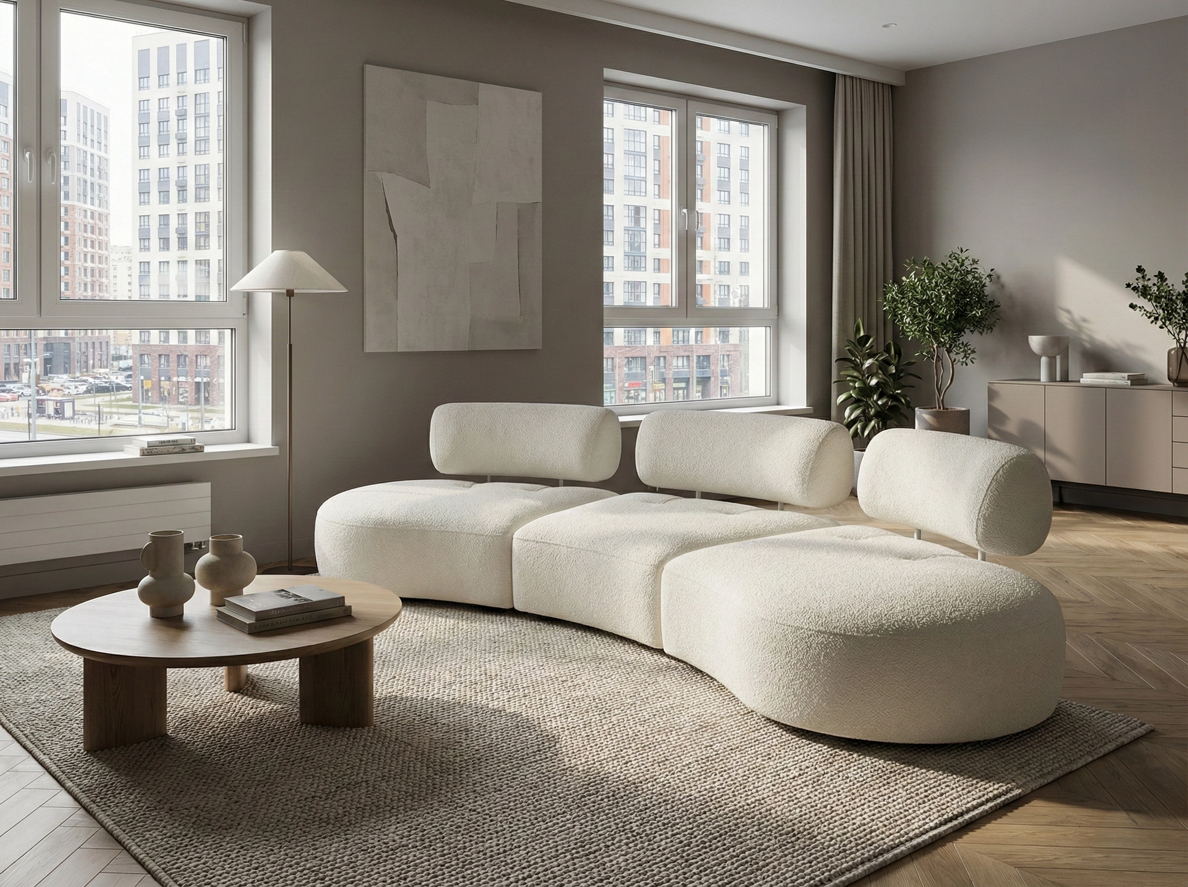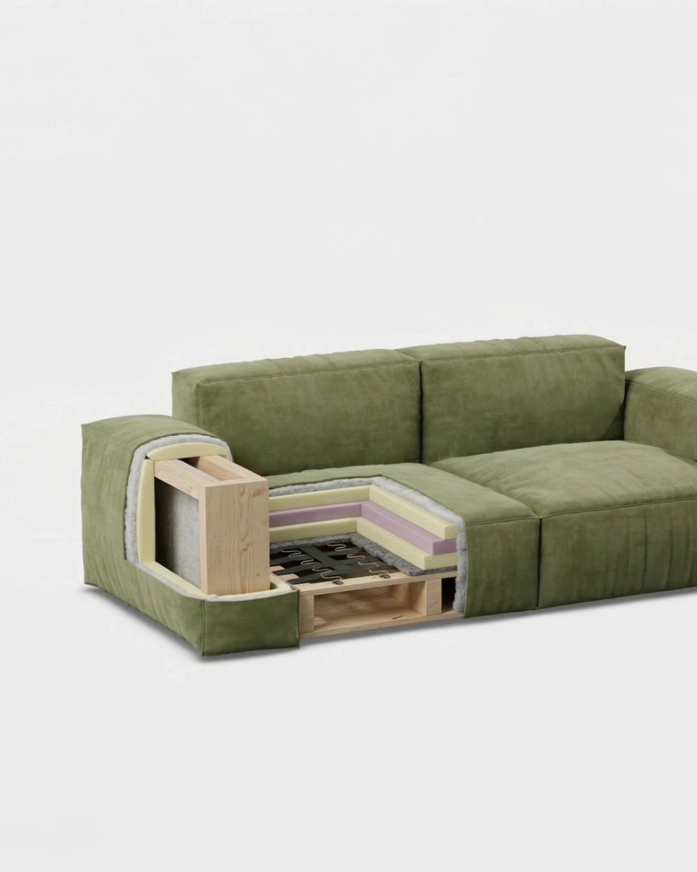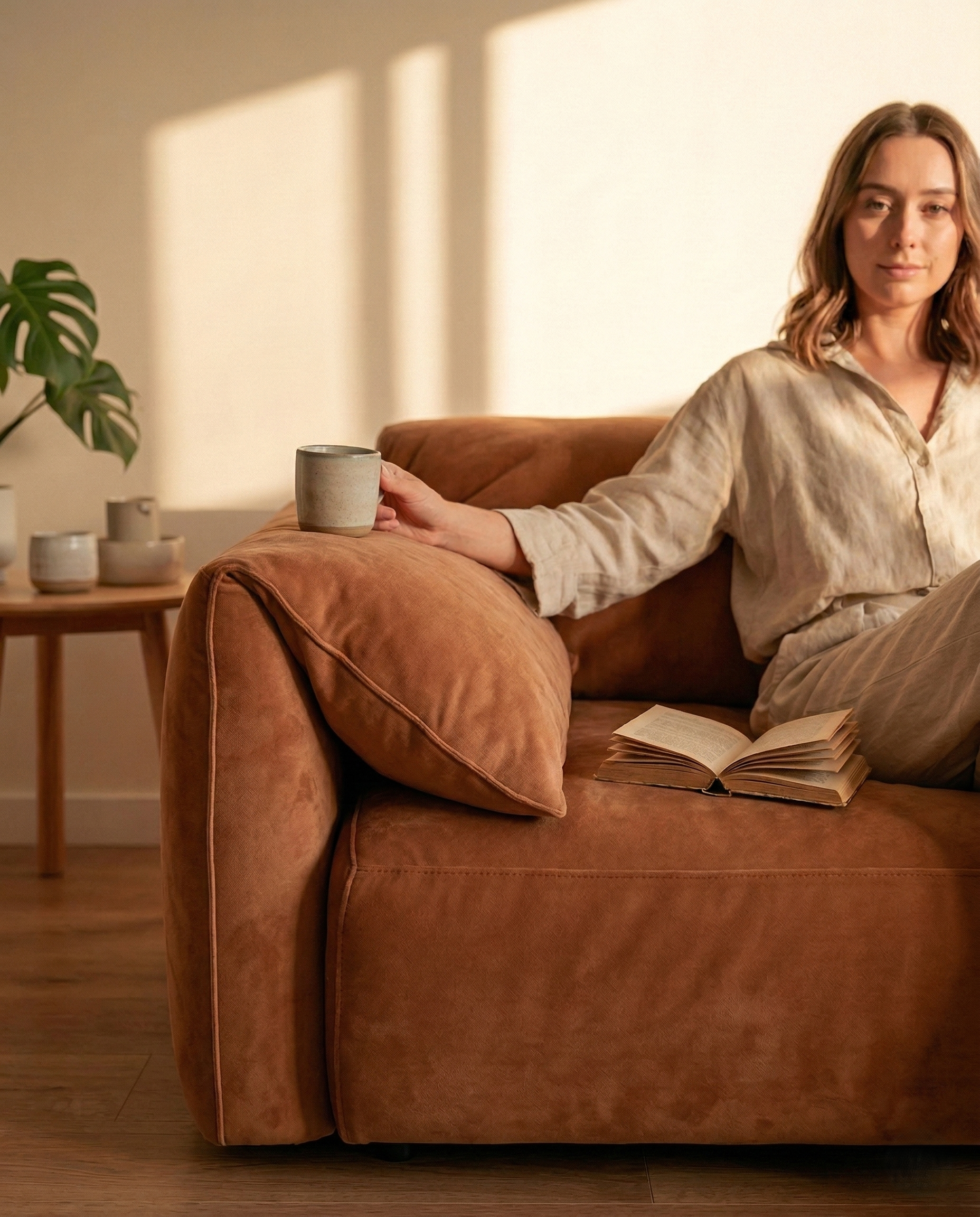 Объемный, геометрически выраженный диван, сочетающий монументальную форму с глубоким, расслабляющим комфортом