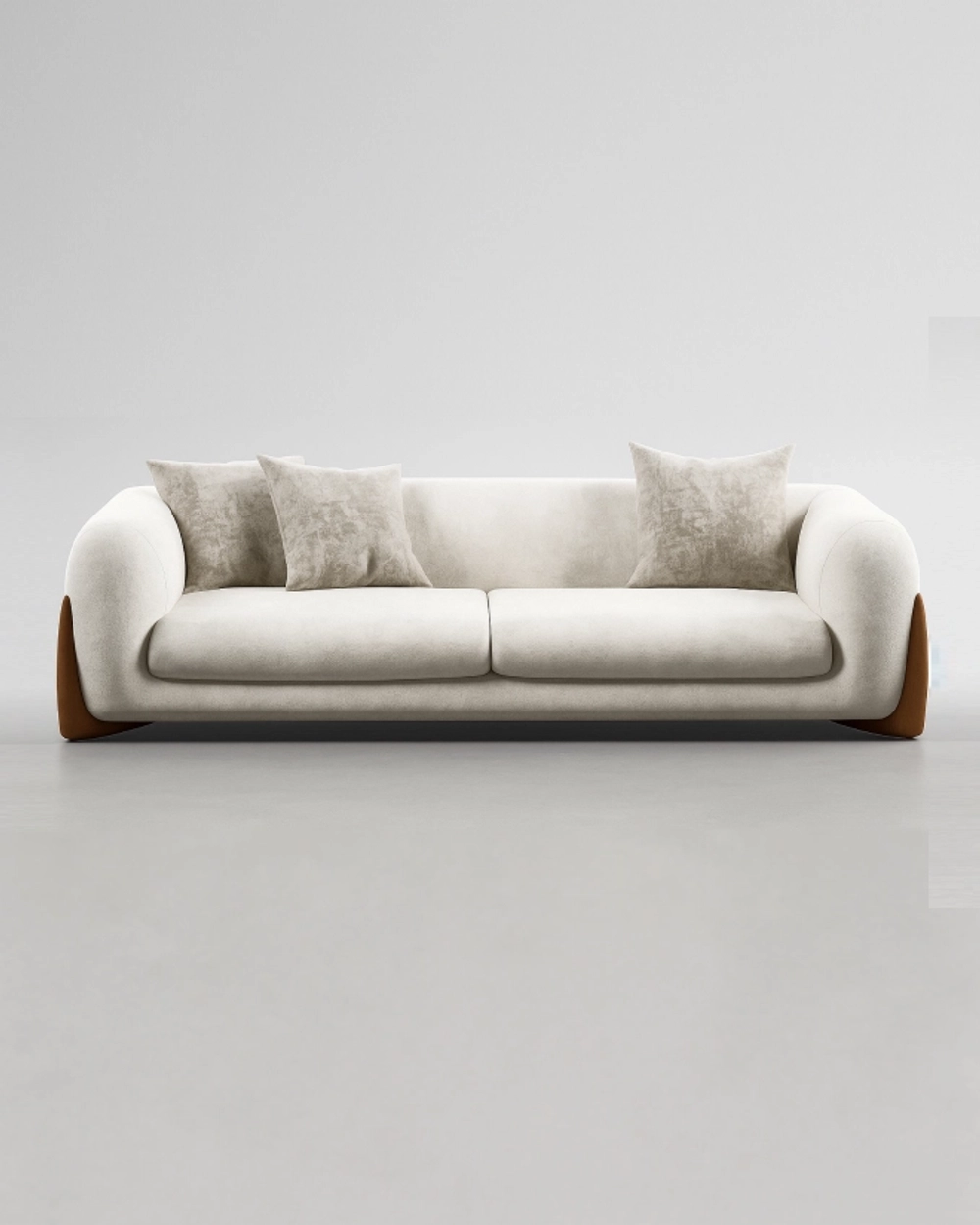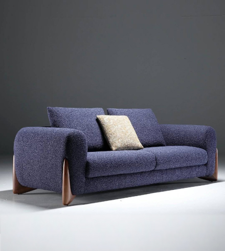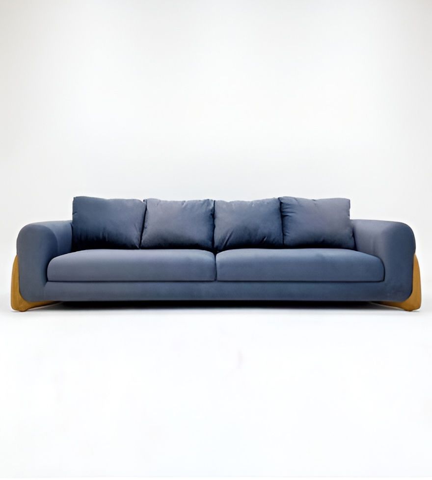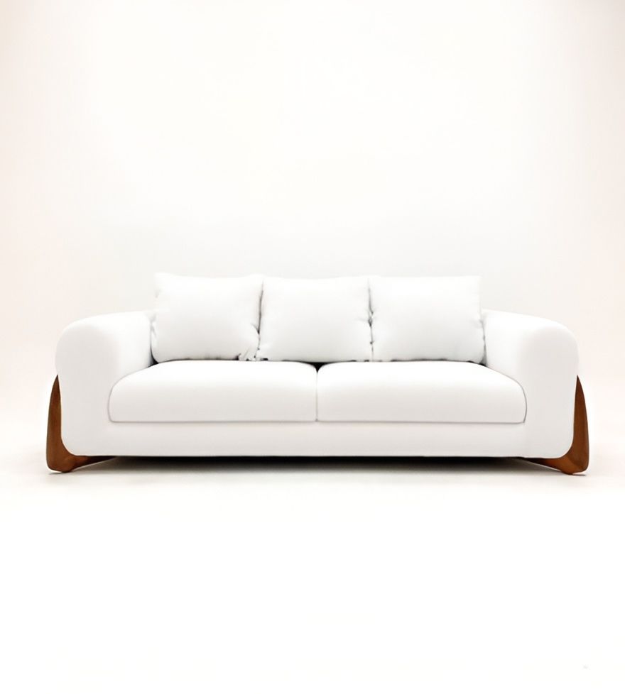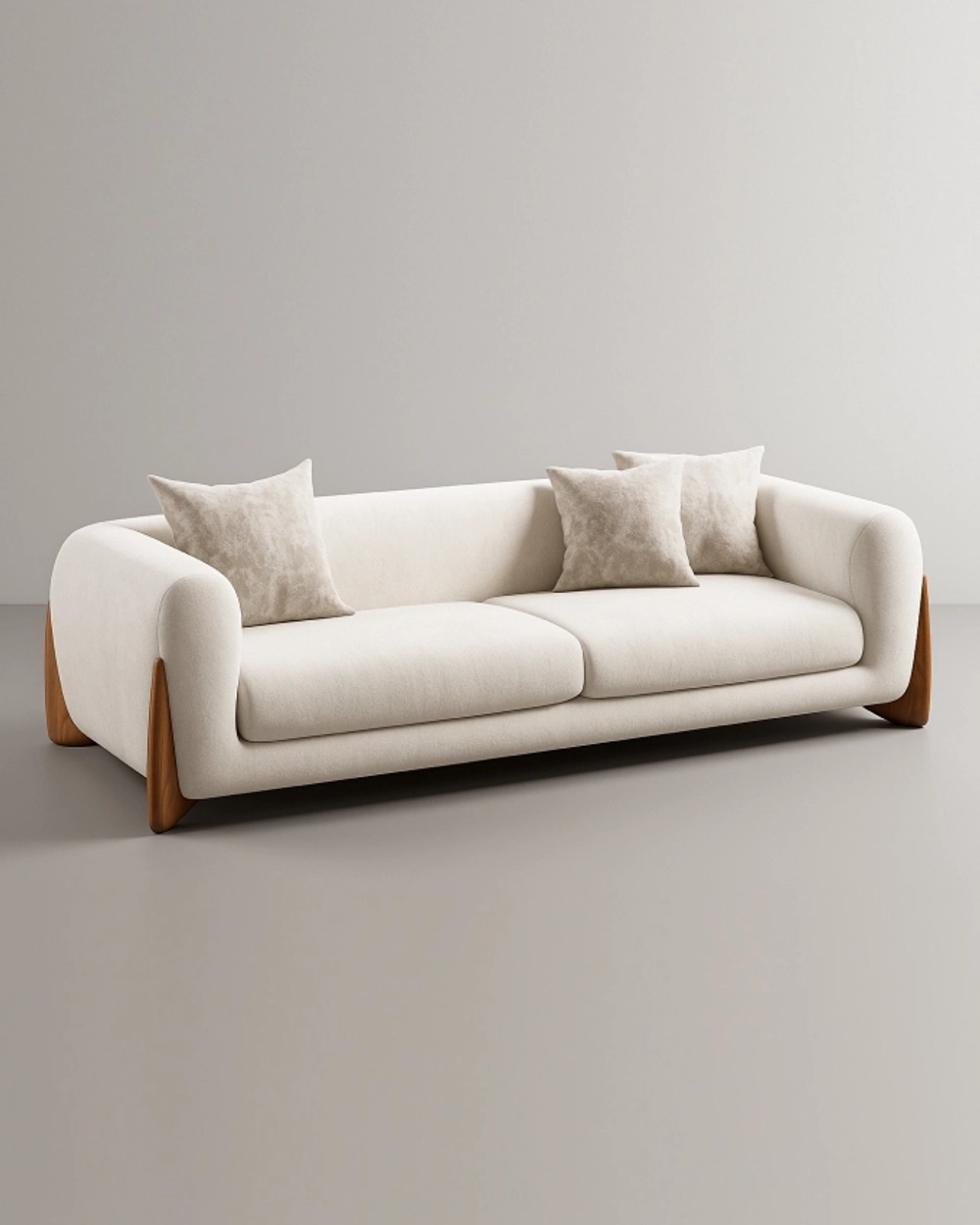 Элегантный диван с плавными подлокотниками и акцентными боковыми вставками из дерева, создающий гармоничное сочетание уюта и современного дизайна