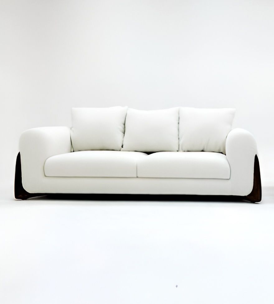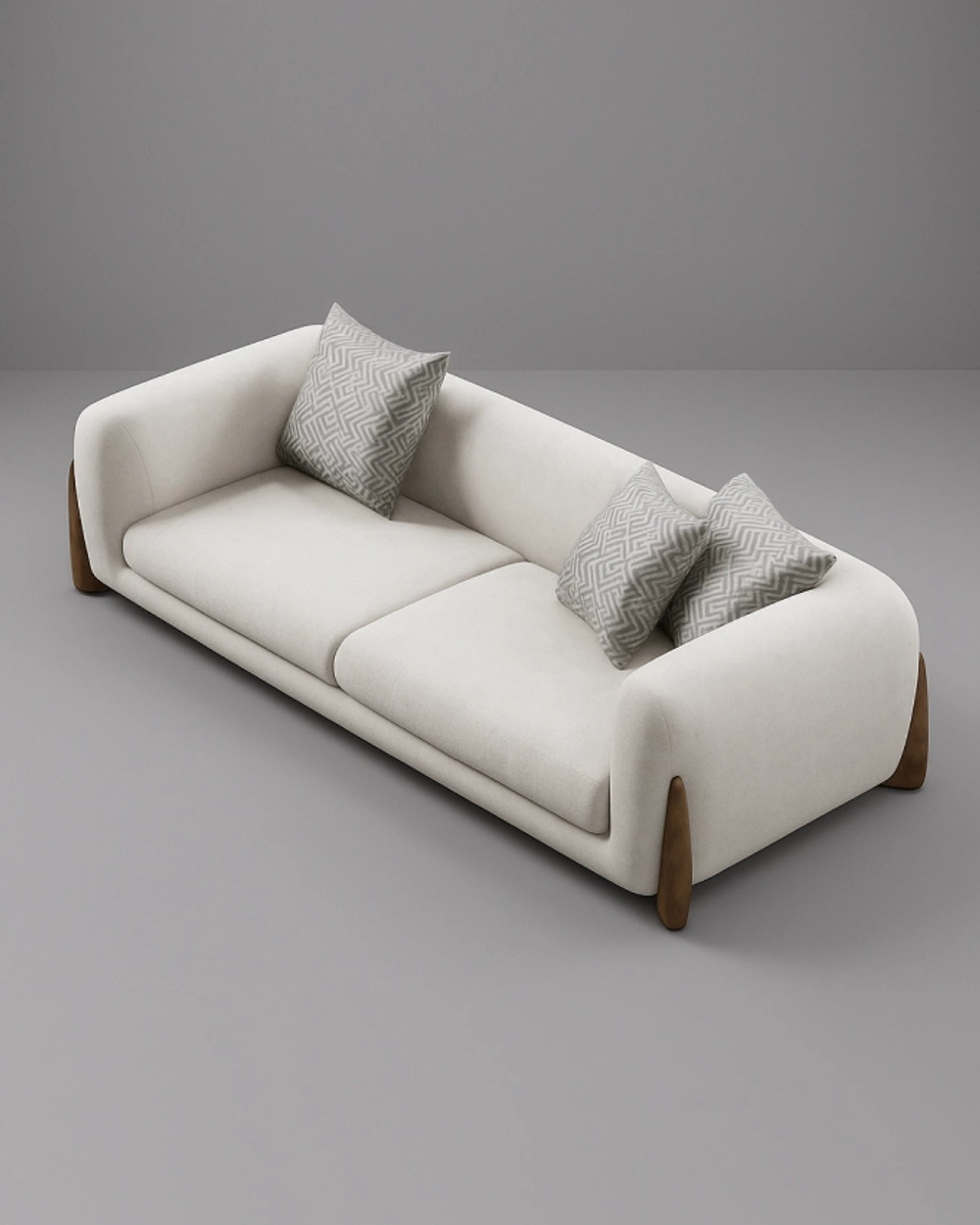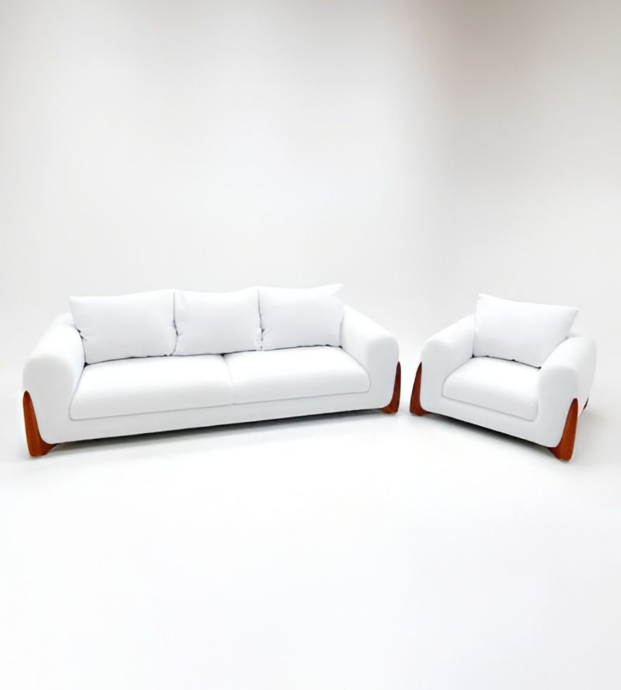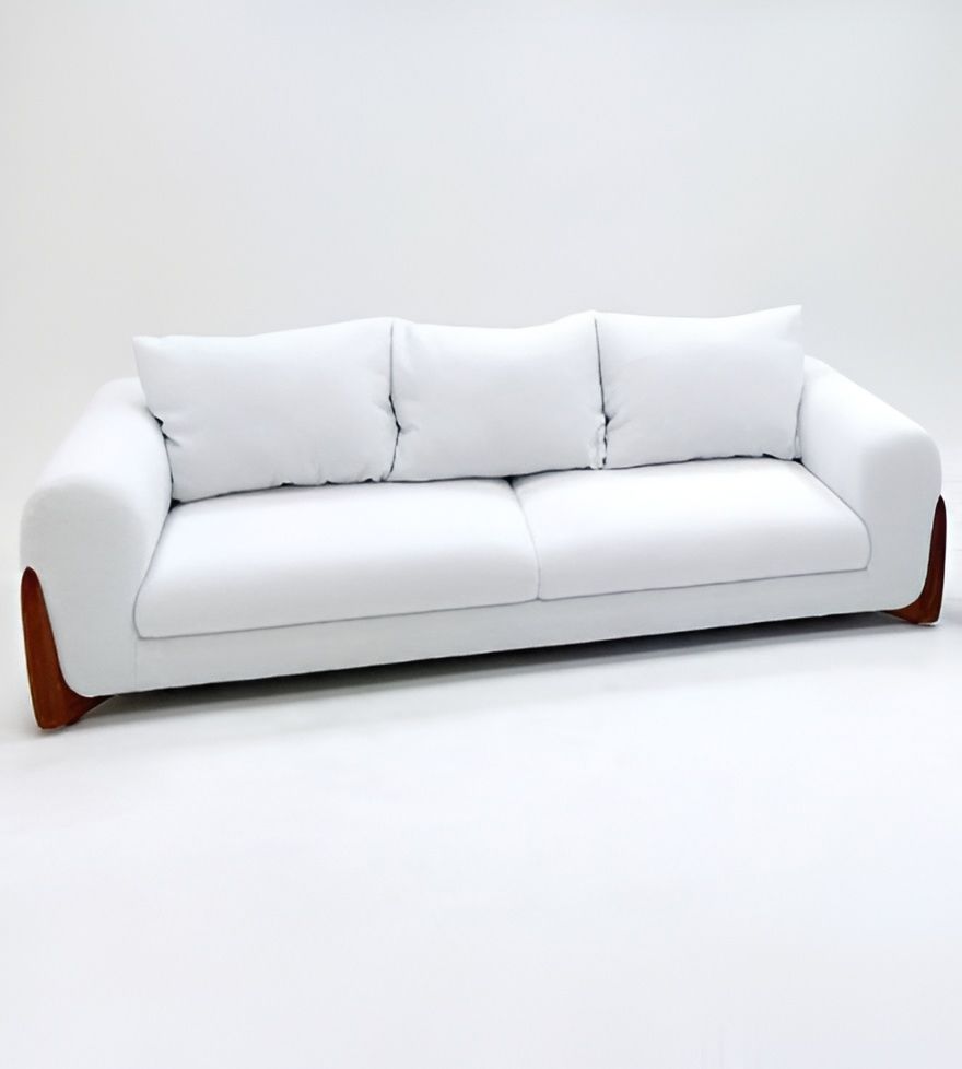 Элегантный диван с плавными подлокотниками и акцентными боковыми вставками из дерева, создающий гармоничное сочетание уюта и современного дизайна