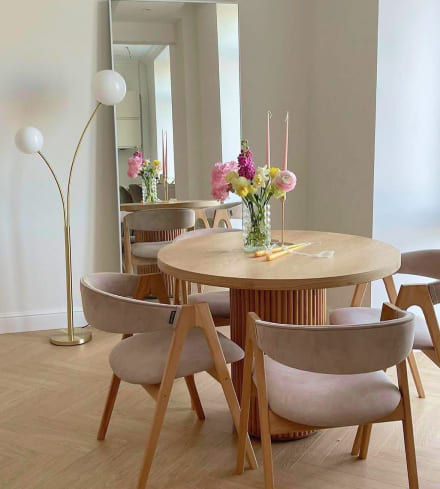 Прочный каркас из массива и удобная посадка в светлой обивке для стильного интерьера