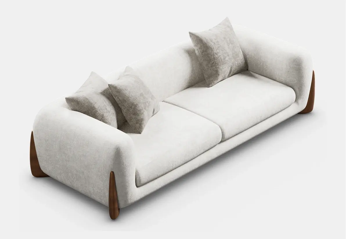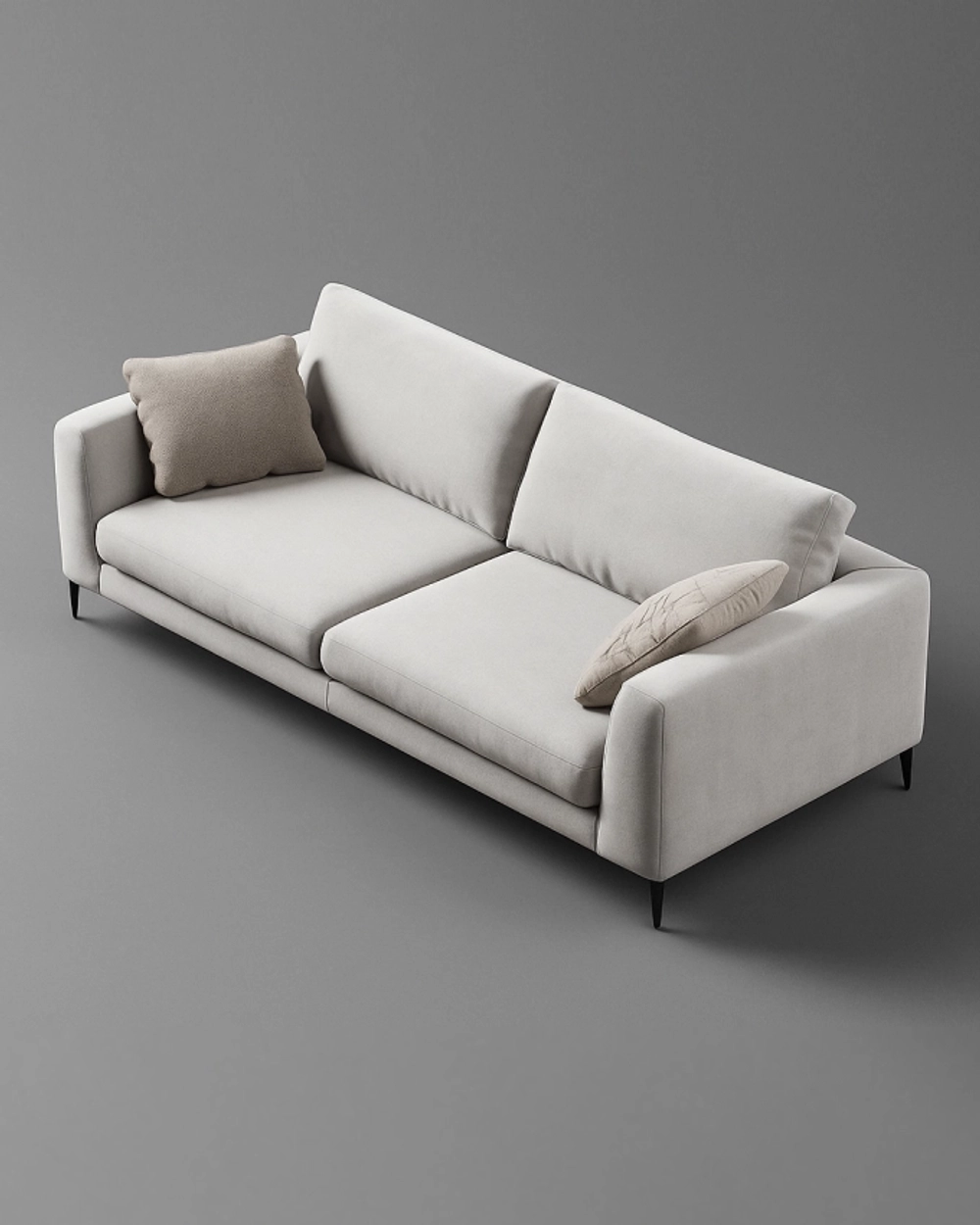 Стильный диван с лаконичными прямыми подлокотниками и высокими тонкими ножками, создающий ощущение легкости и современного минимализма
