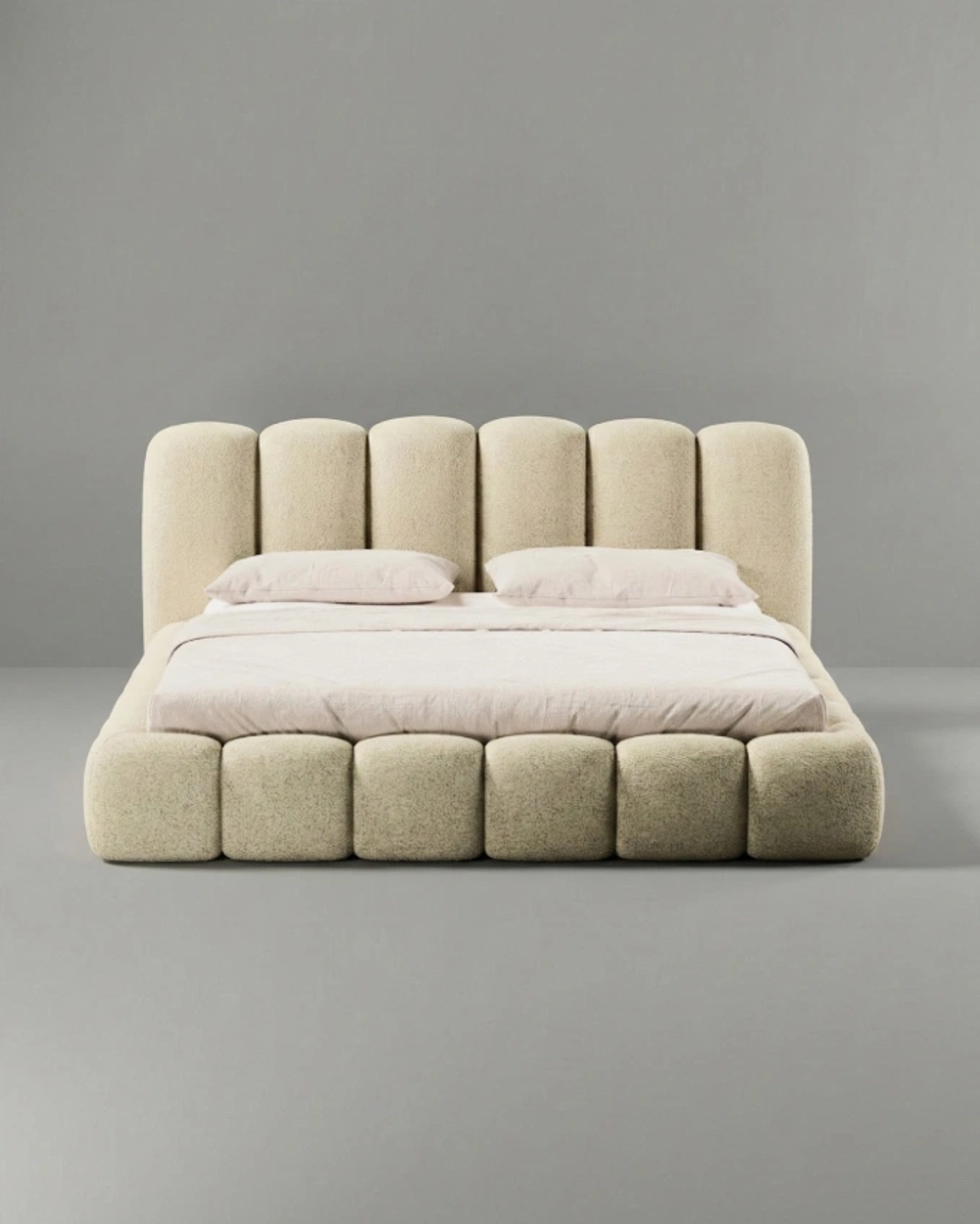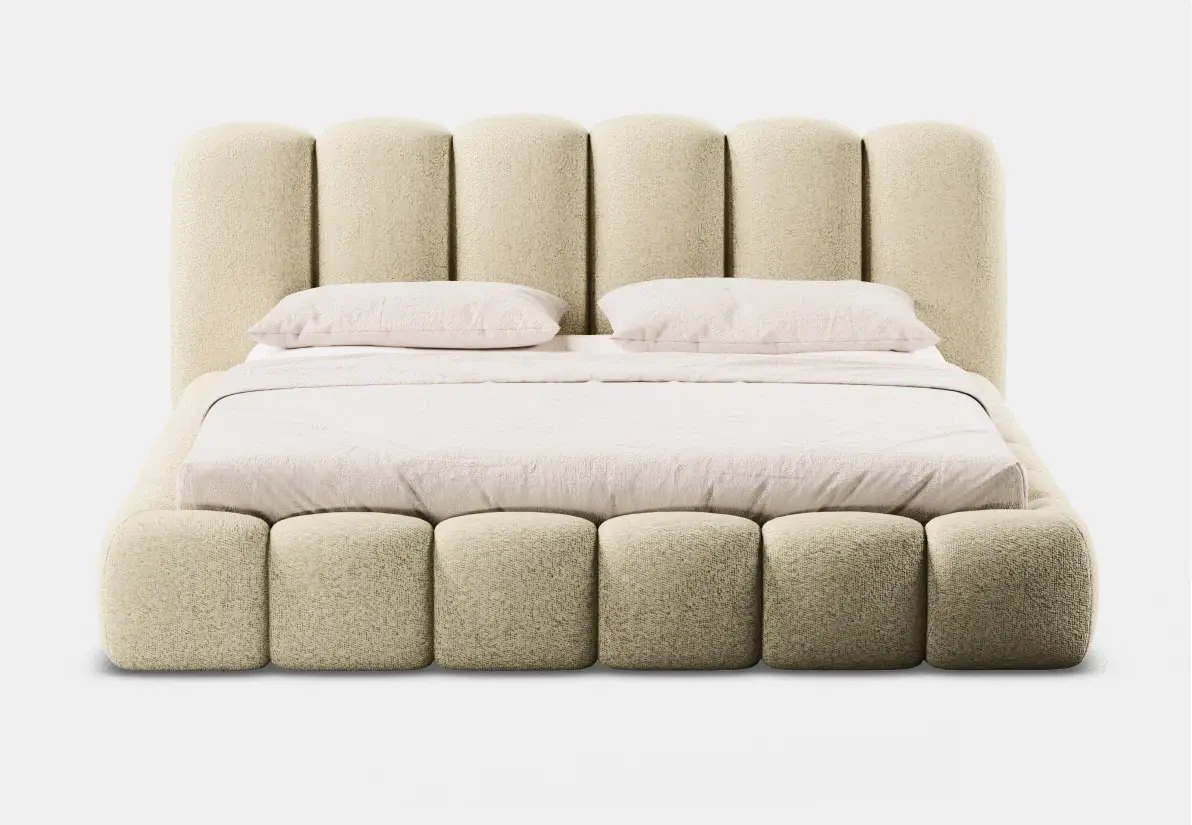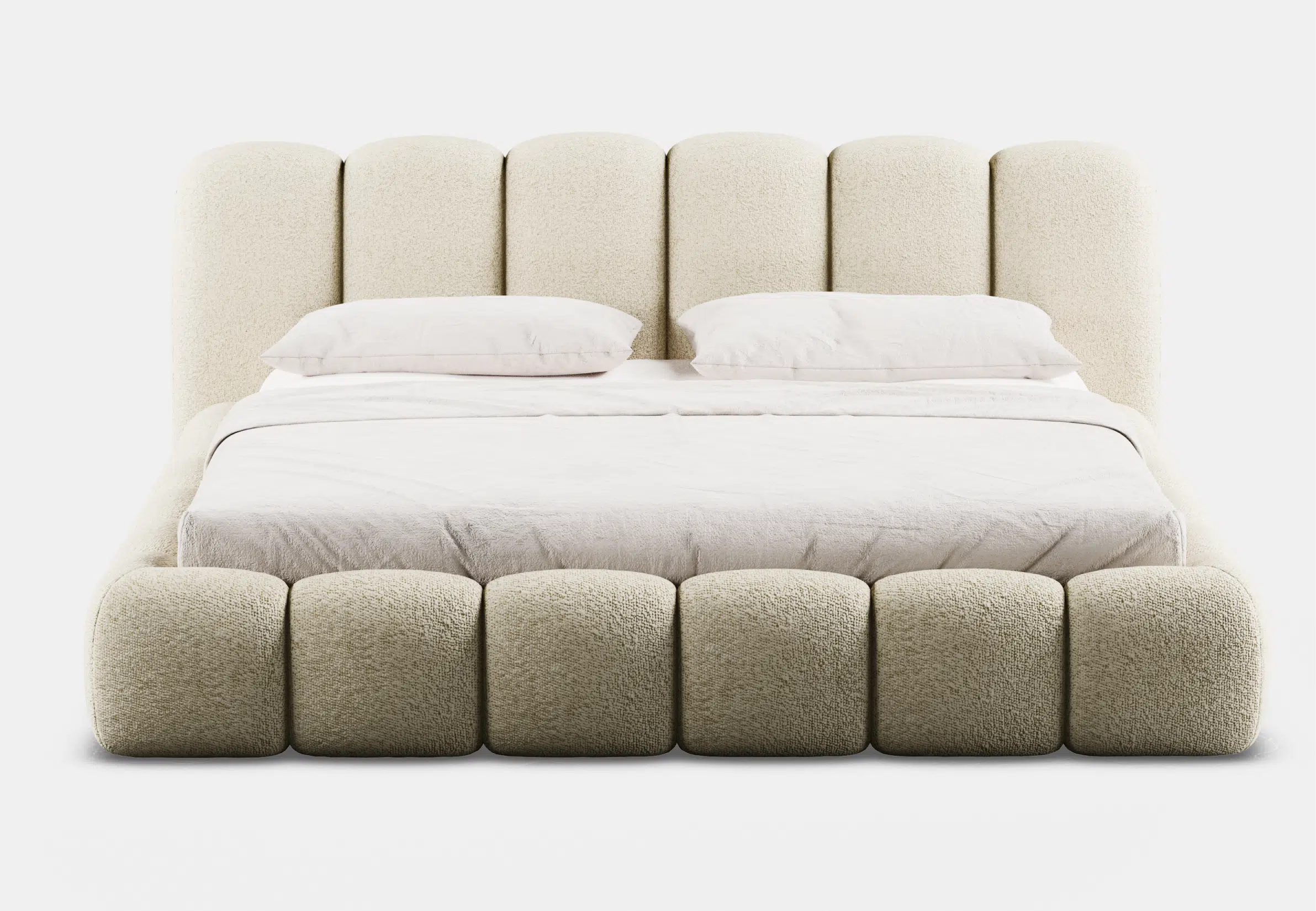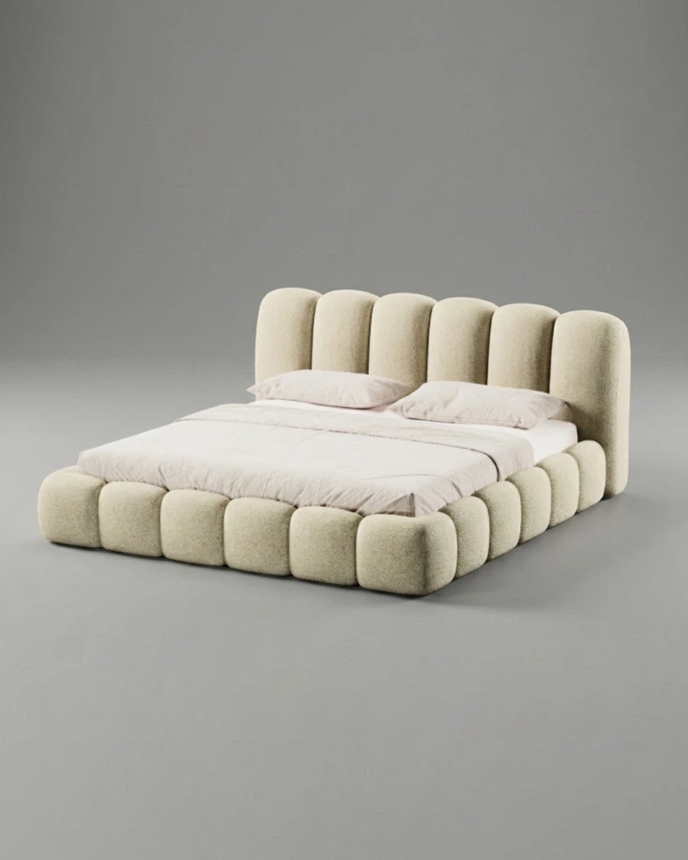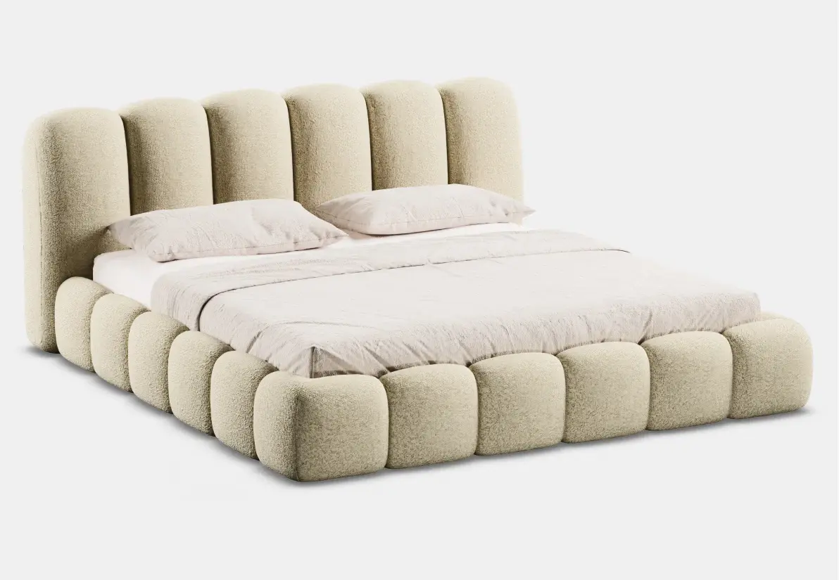 Объемная кровать с мягким модульным основанием и высоким изголовьем в стиле «бабл» для яркого интерьерного акцента