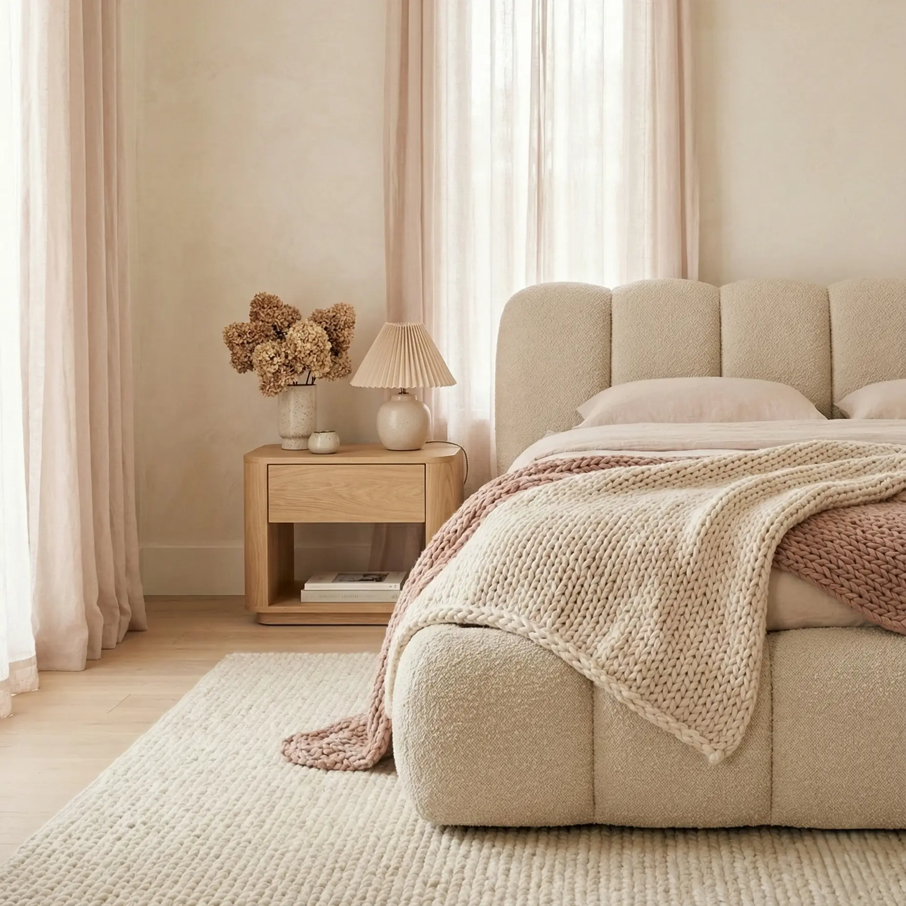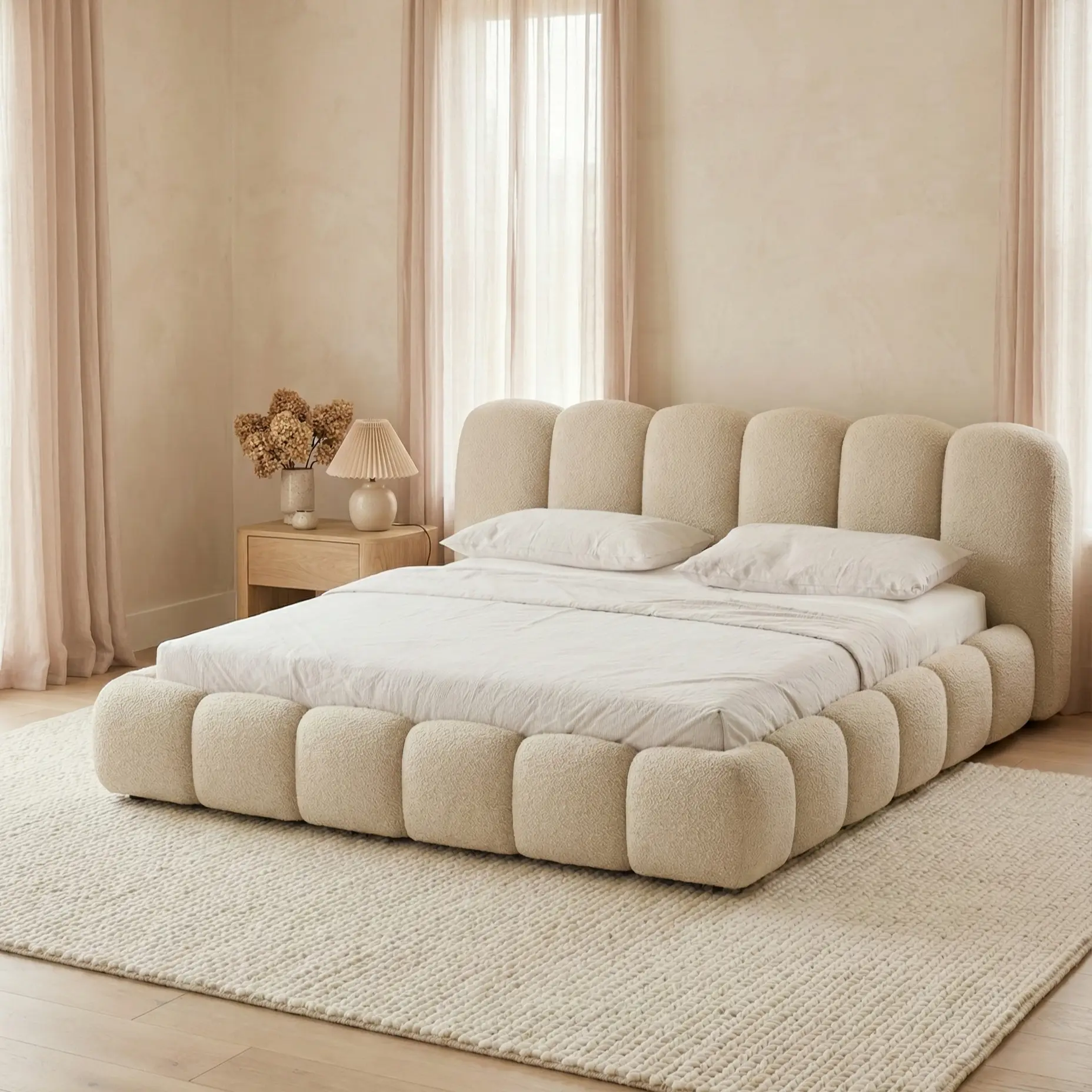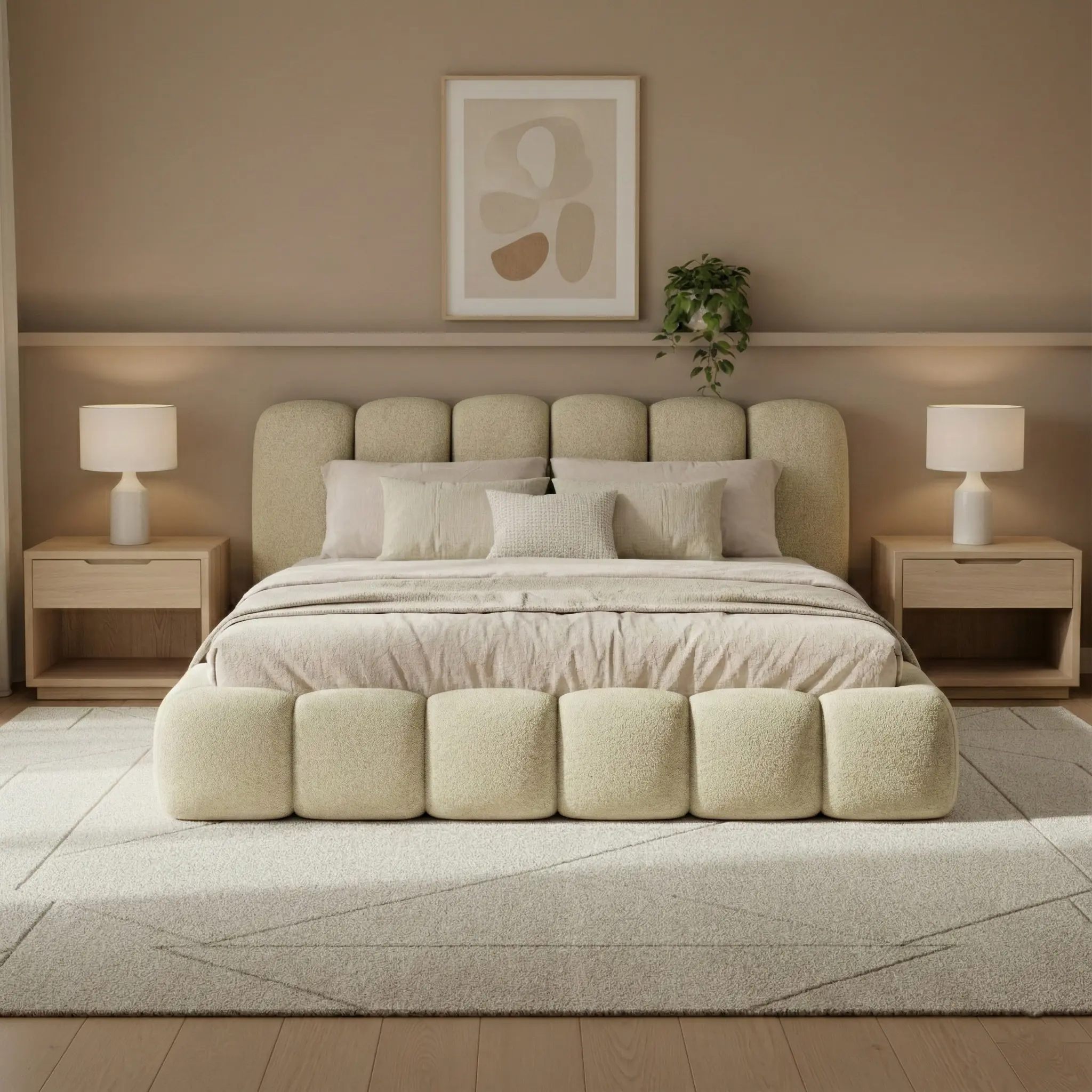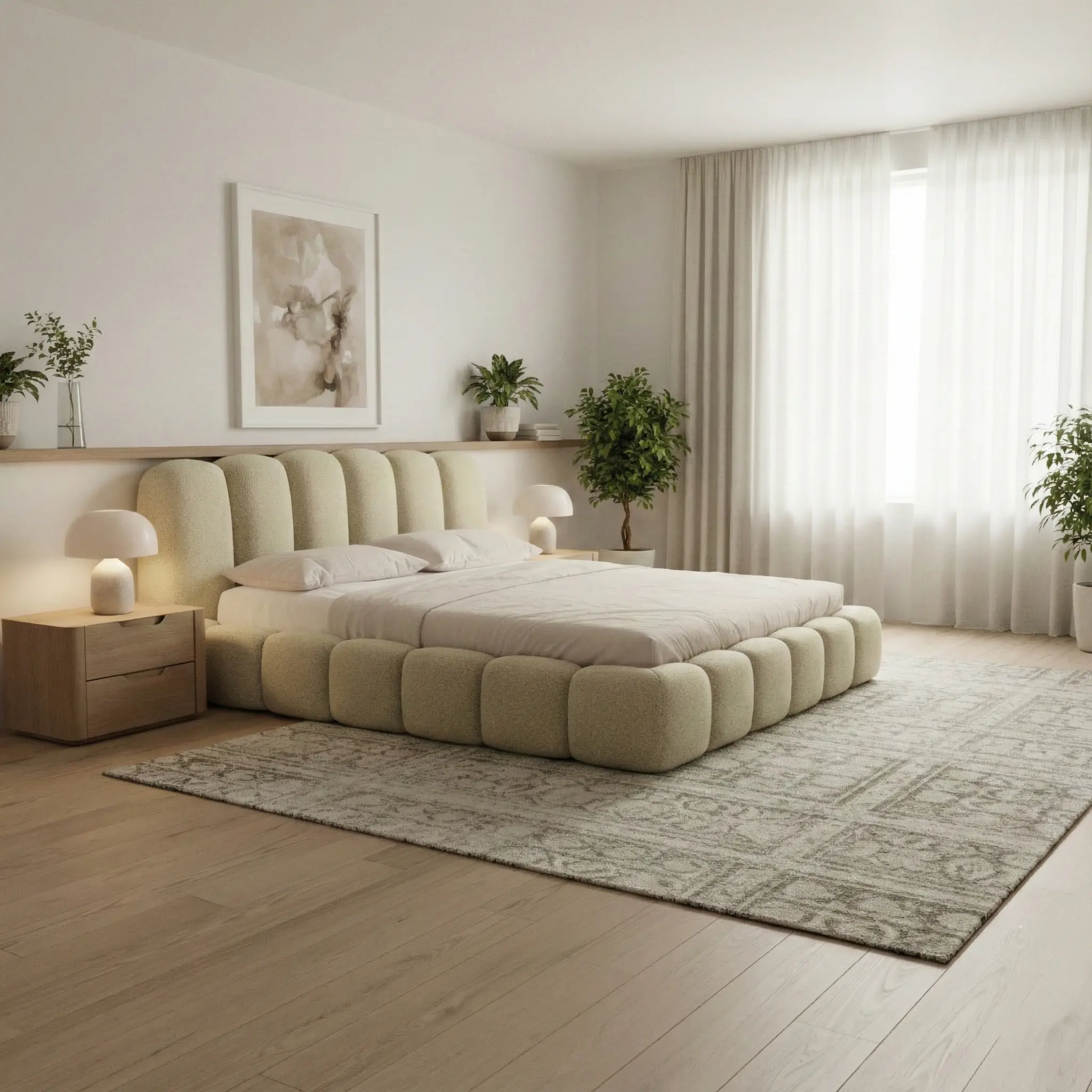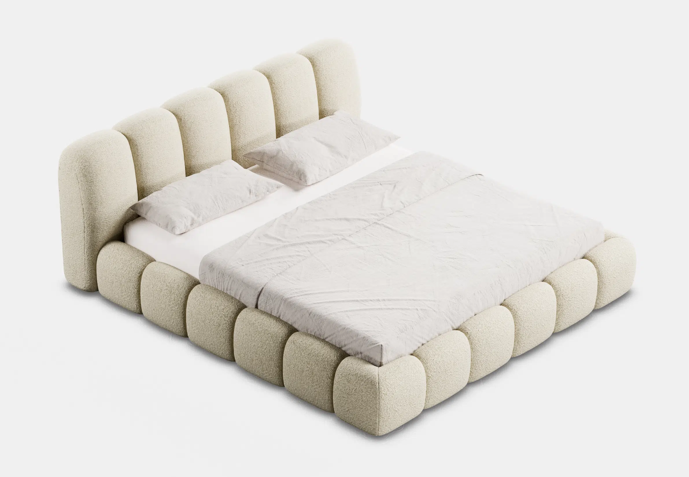 Объемная кровать с мягким модульным основанием и высоким изголовьем в стиле «бабл» для яркого интерьерного акцента