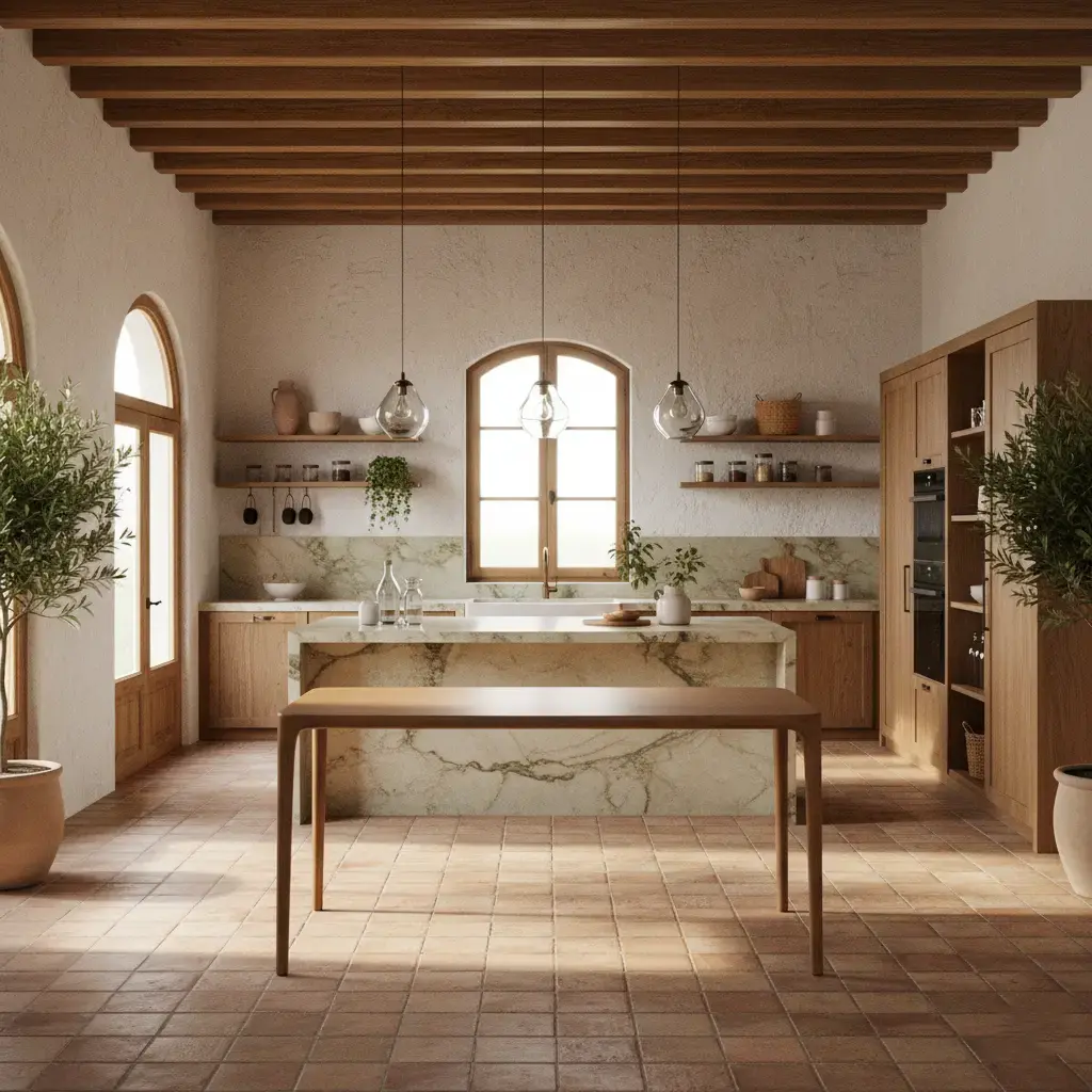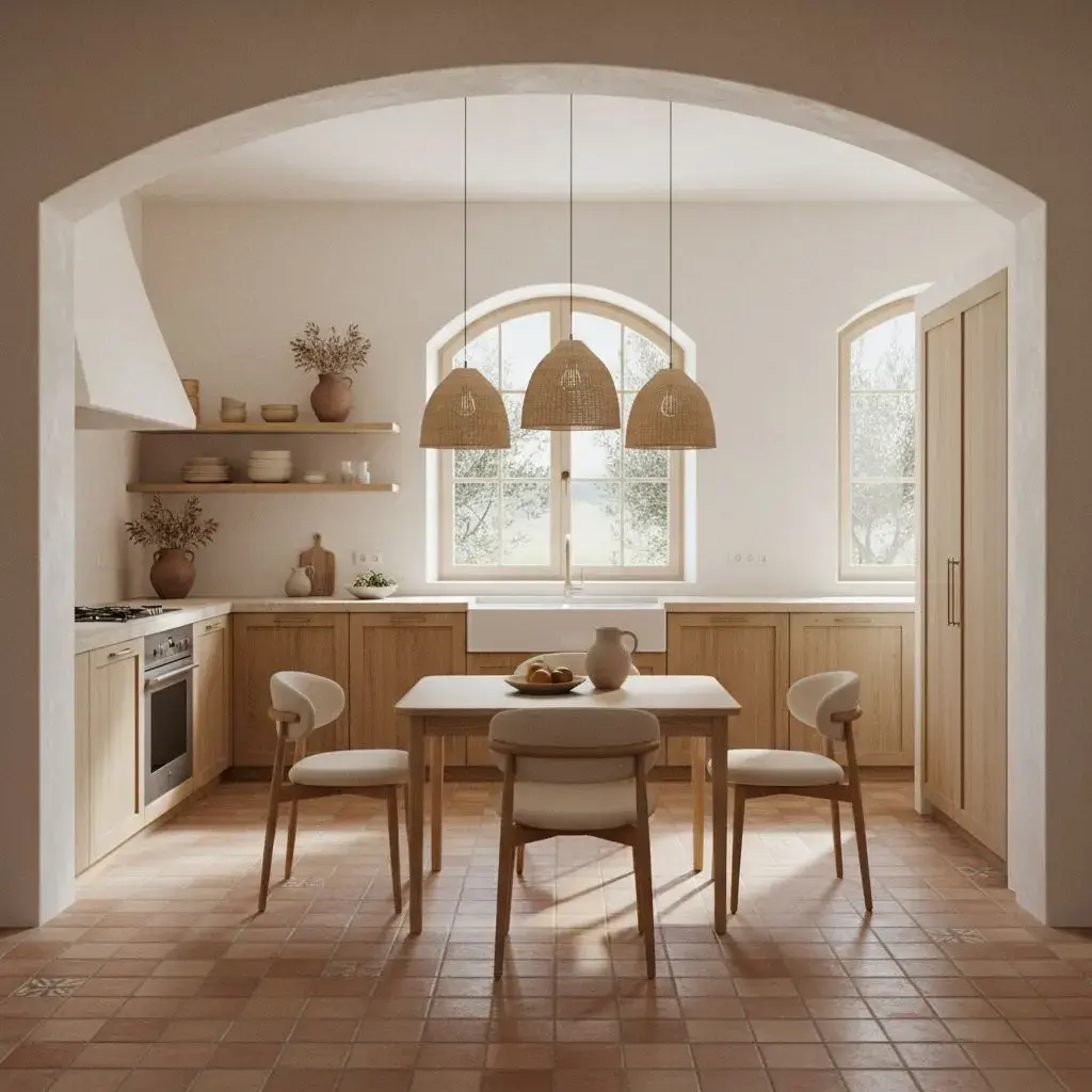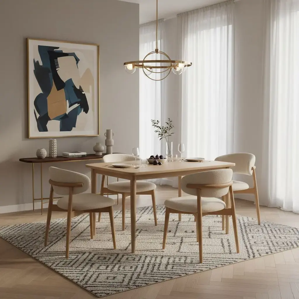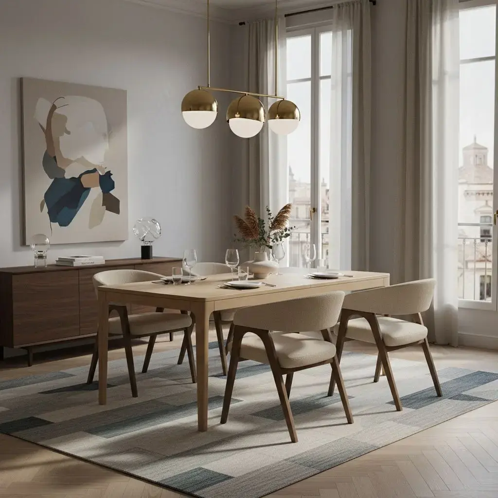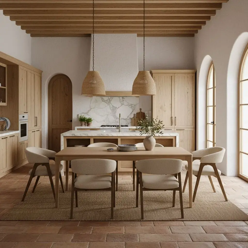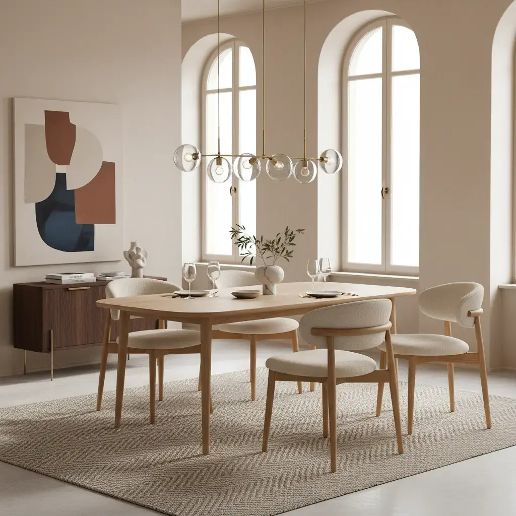 Круглый стол с массивными цилиндрическими опорами — сочетание архитектурной выразительности и естественной теплоты дерева