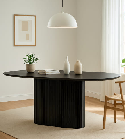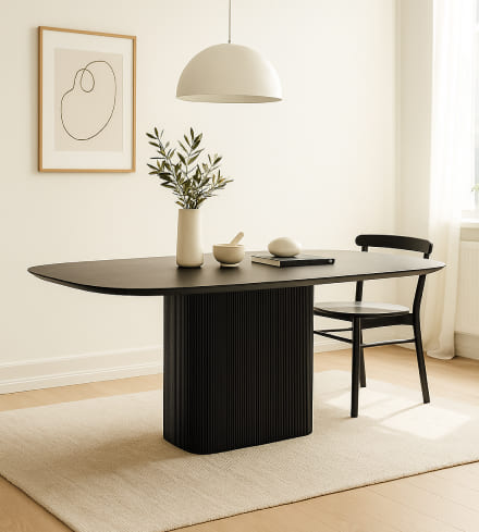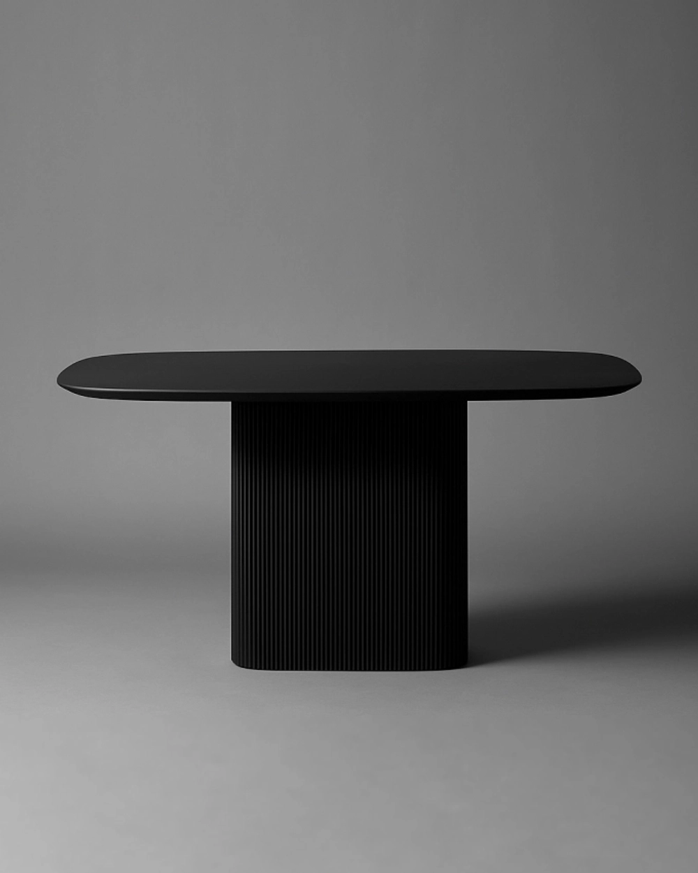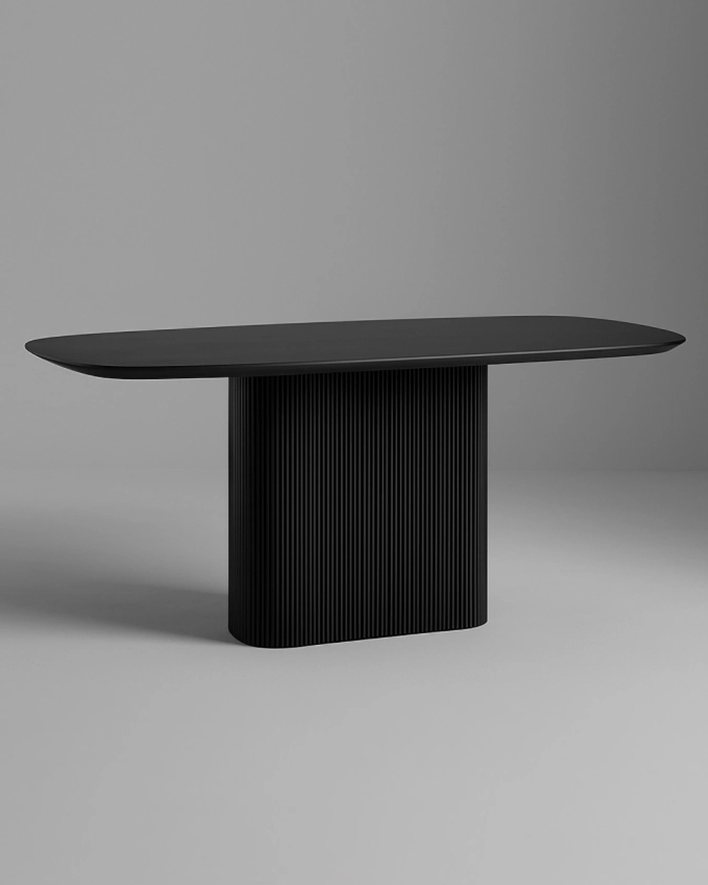 Строгий чёрный стол с рифлёной опорой и гладкой столешницей — современный акцент, который подчеркнёт статус и стиль интерьера
