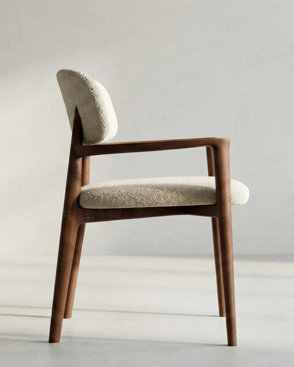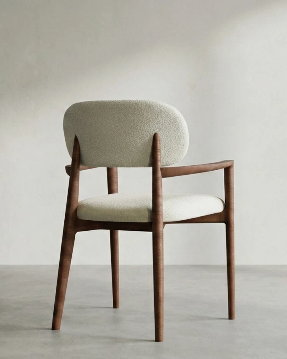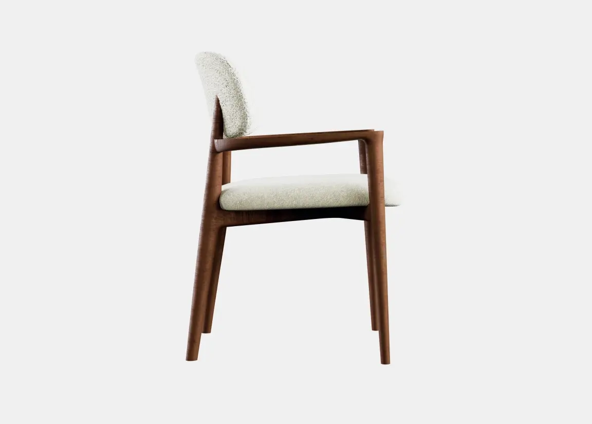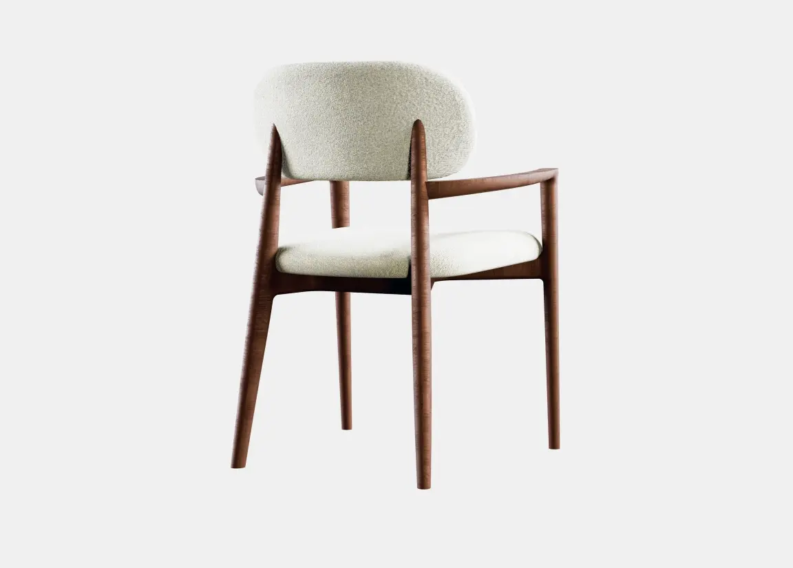 Стул с мягкой спинкой и подлокотниками на изящном деревянном каркасе в современном стиле