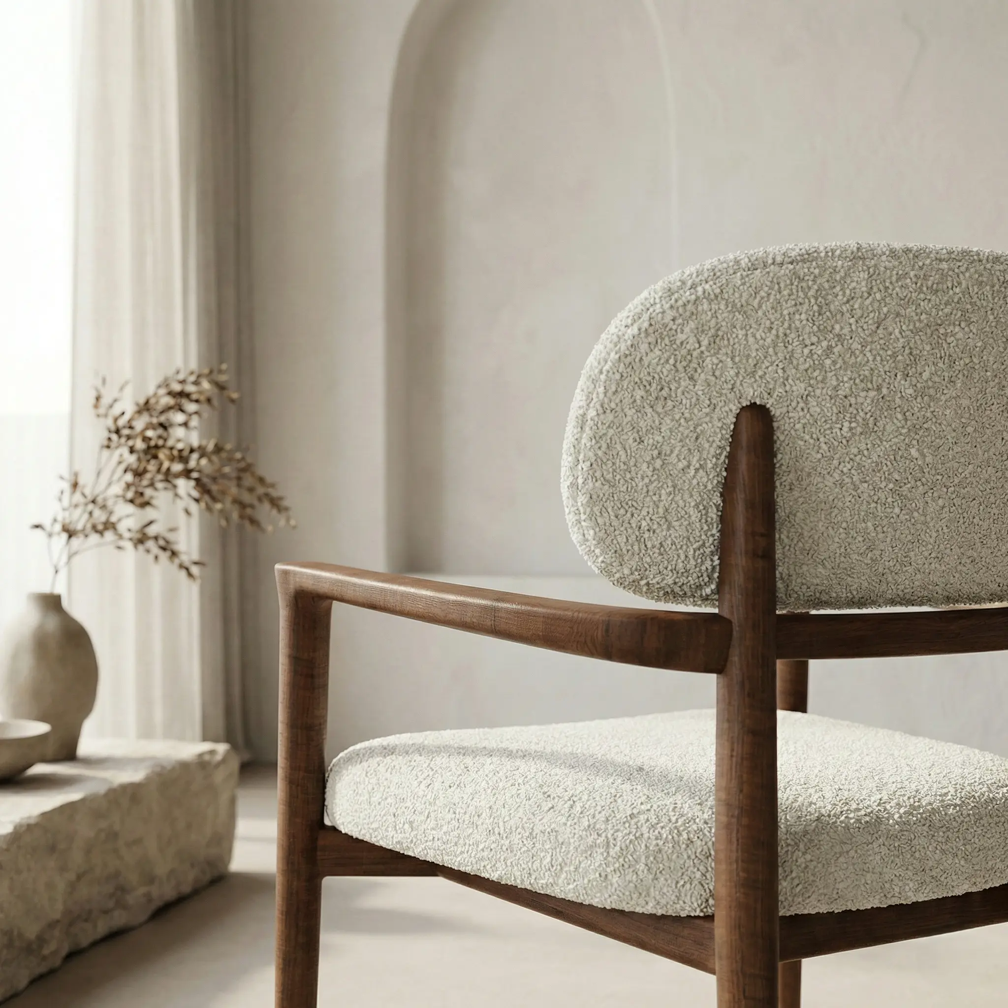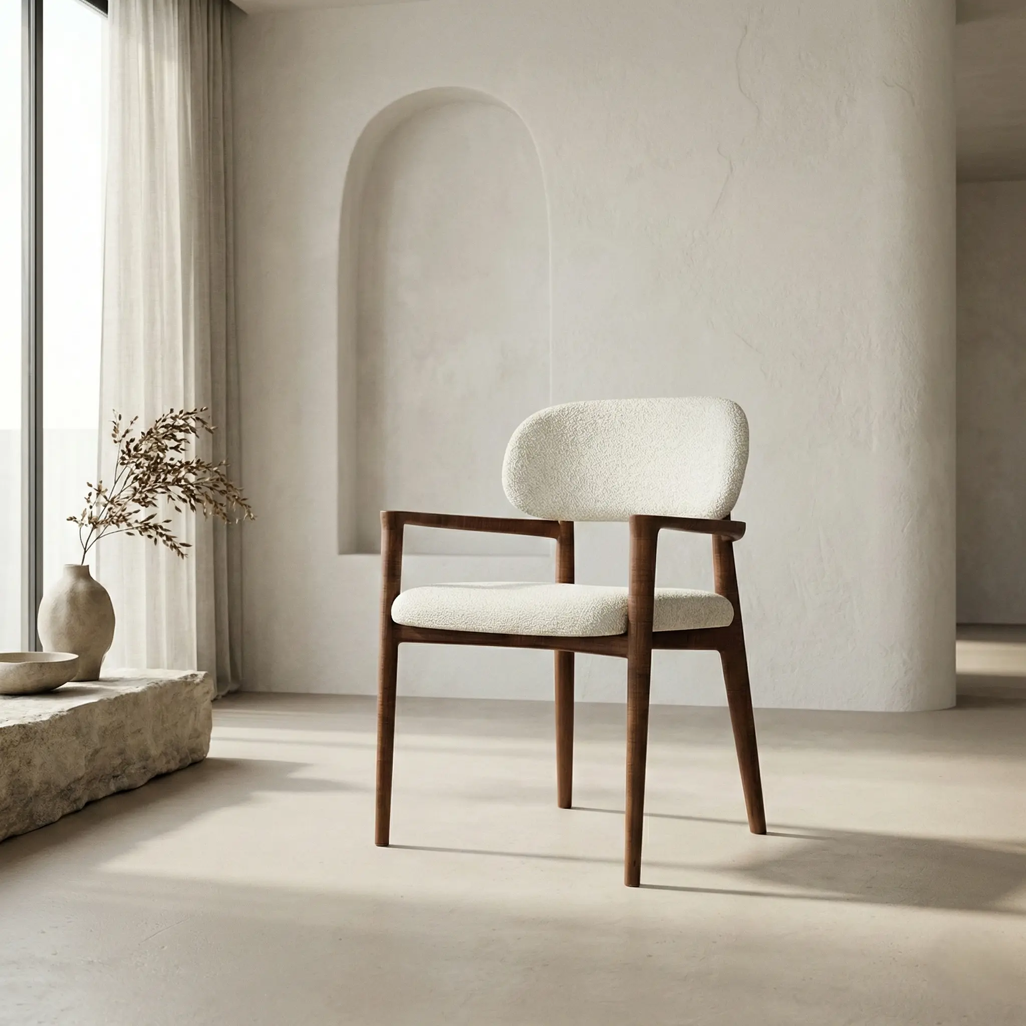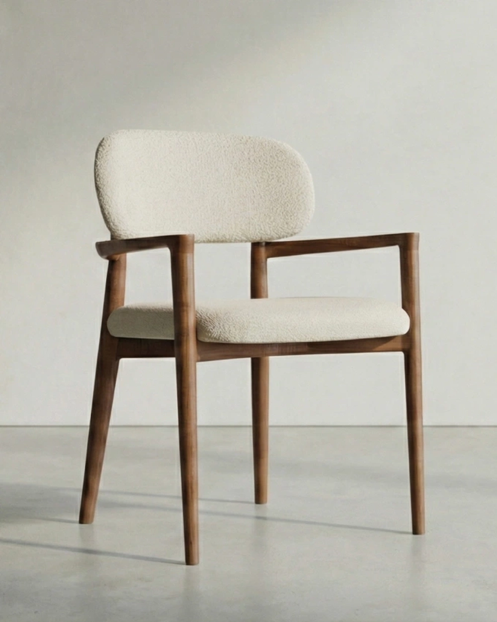 Стул с мягкой спинкой и подлокотниками на изящном деревянном каркасе в современном стиле
