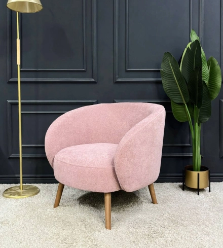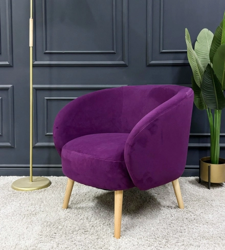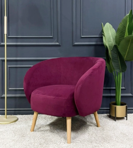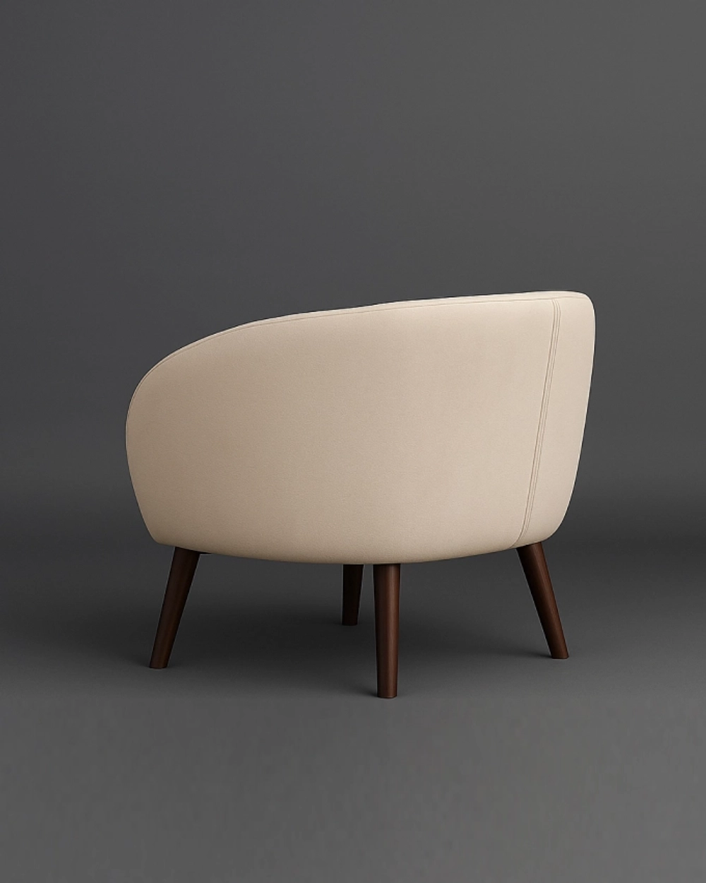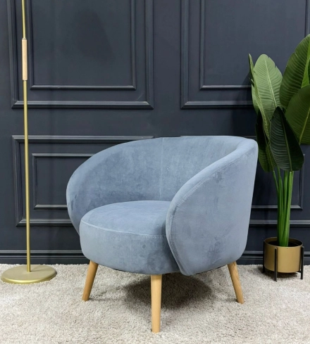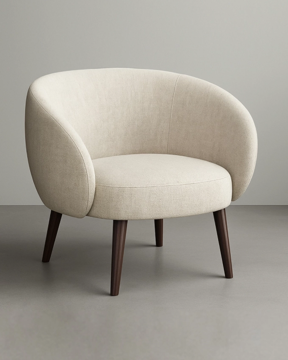 Компактное кресло с округлой формой спинки и плавными линиями, мягким сиденьем и устойчивыми деревянными ножками