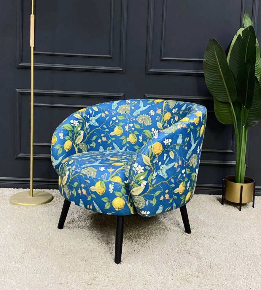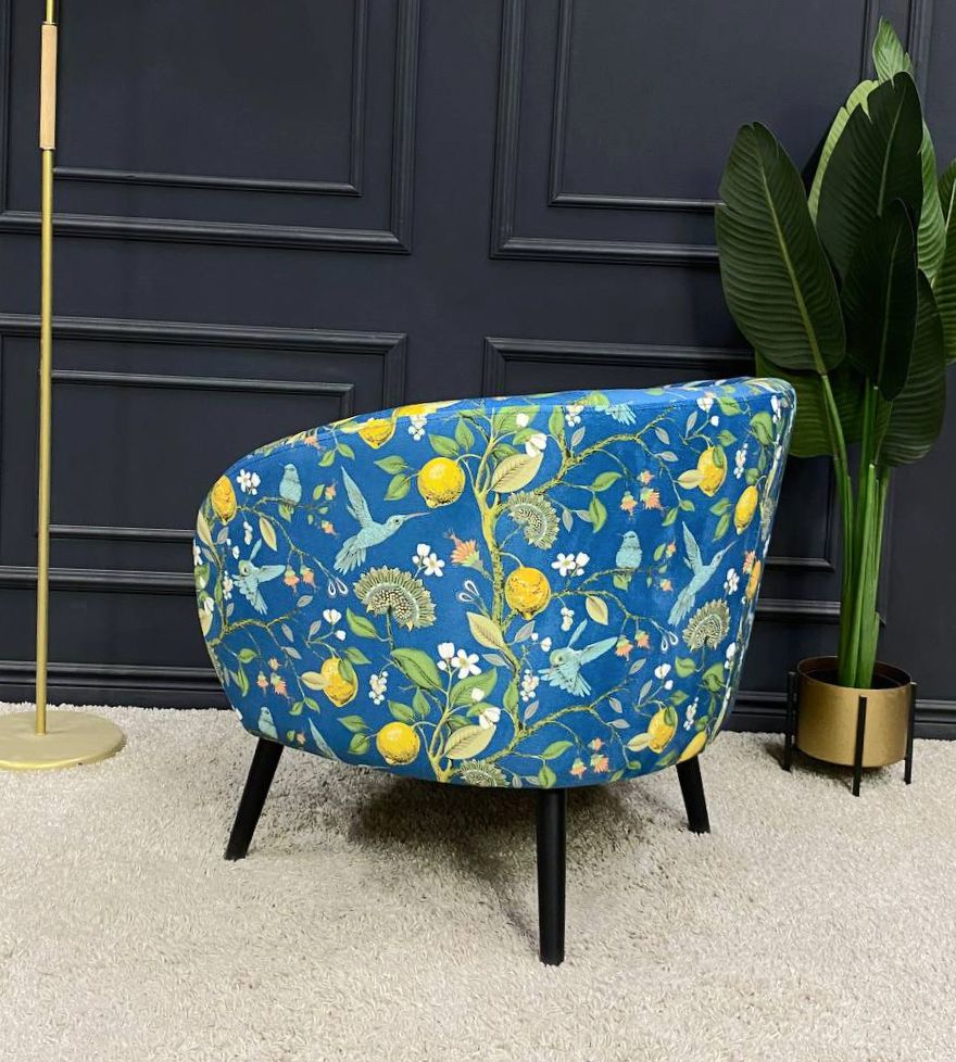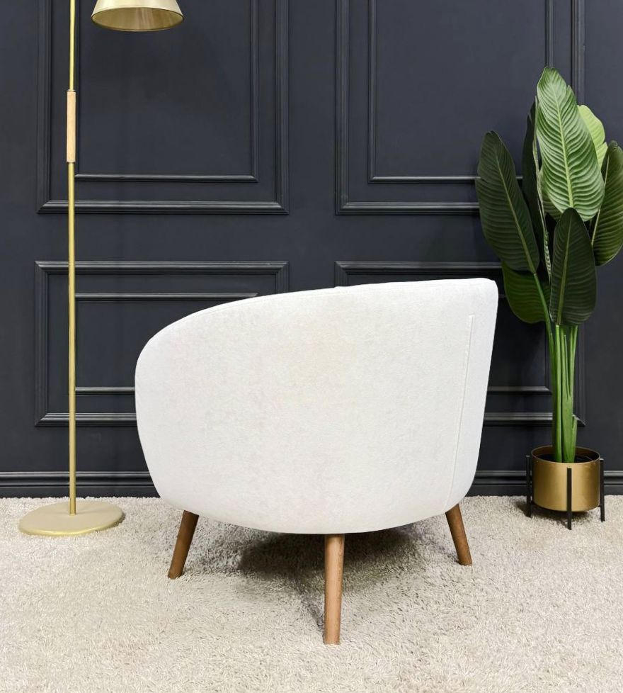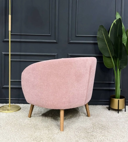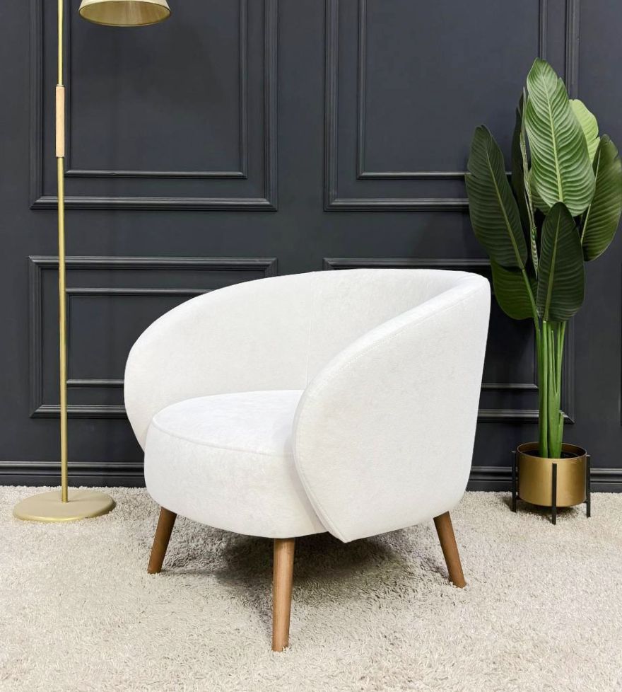 Компактное кресло с округлой формой спинки и плавными линиями, мягким сиденьем и устойчивыми деревянными ножками