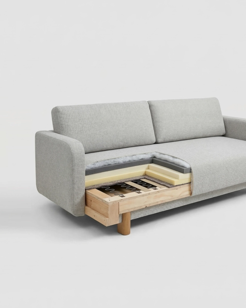 Прочная мебельная лента в основе сиденья. Создает гибкую, дышащую и исключительно долговечную основу для наполнителей. Предотвращает продавливание и дискомфорт